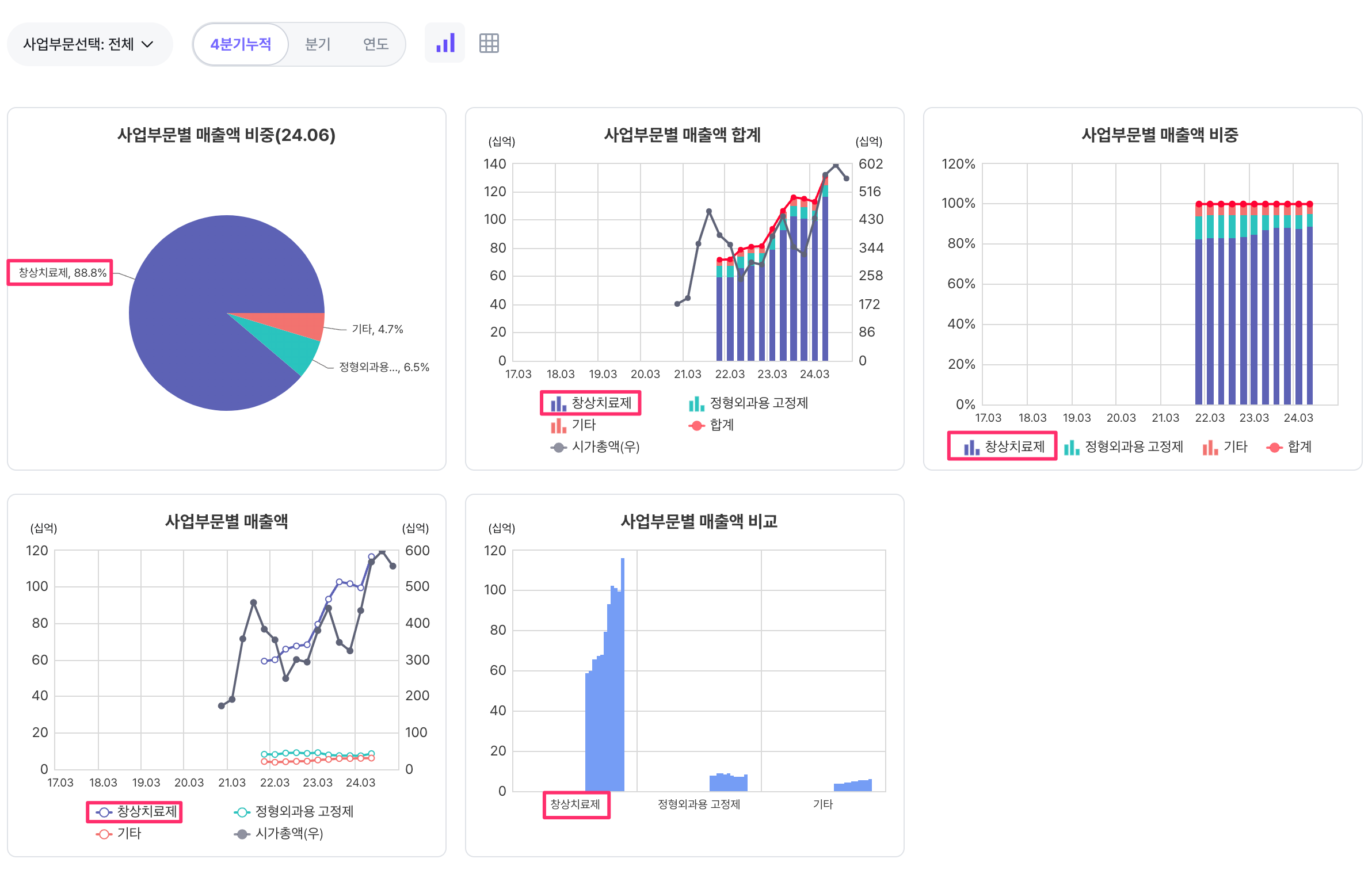 창상치료제가 매출의 대부분을 차지하고 있고 이것이 하이드로콜로이드로 만들어진 제품인가 봅니다.