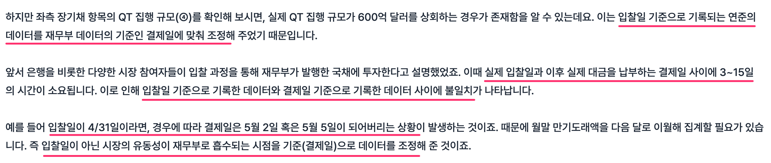 입찰일이 아닌 시장의 유동성이 재무부로 흡수되는 시점을 기준(결제일)으로 데이터를 조정