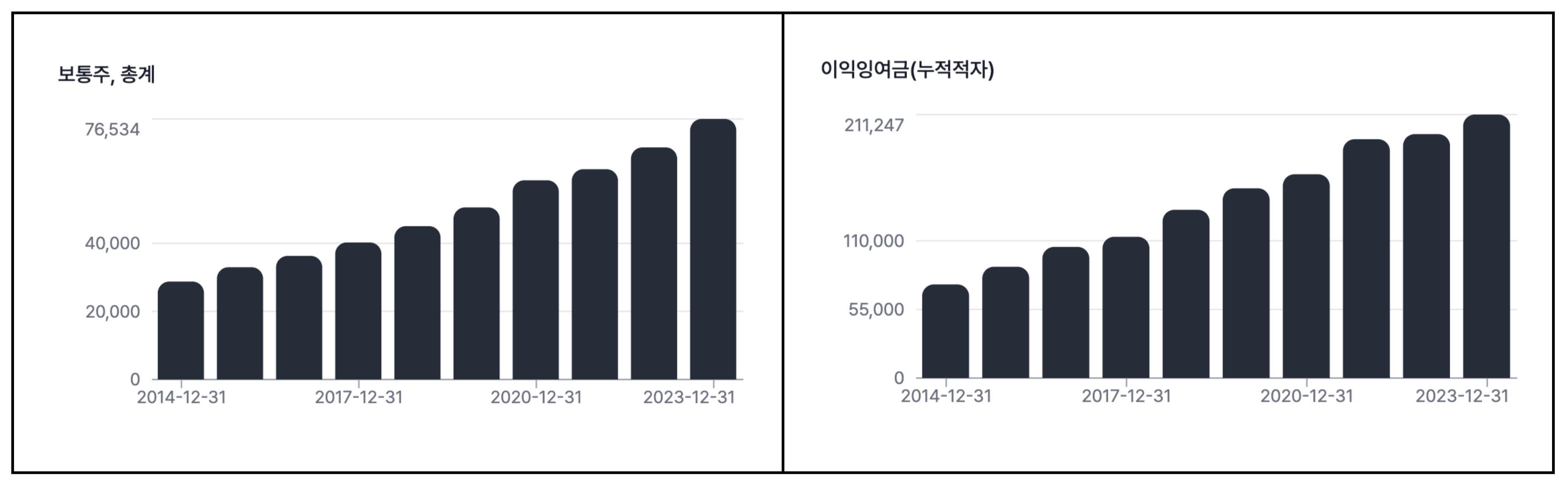 자기자본과 이익잉여금은 꾸준히 증가하고 있음
