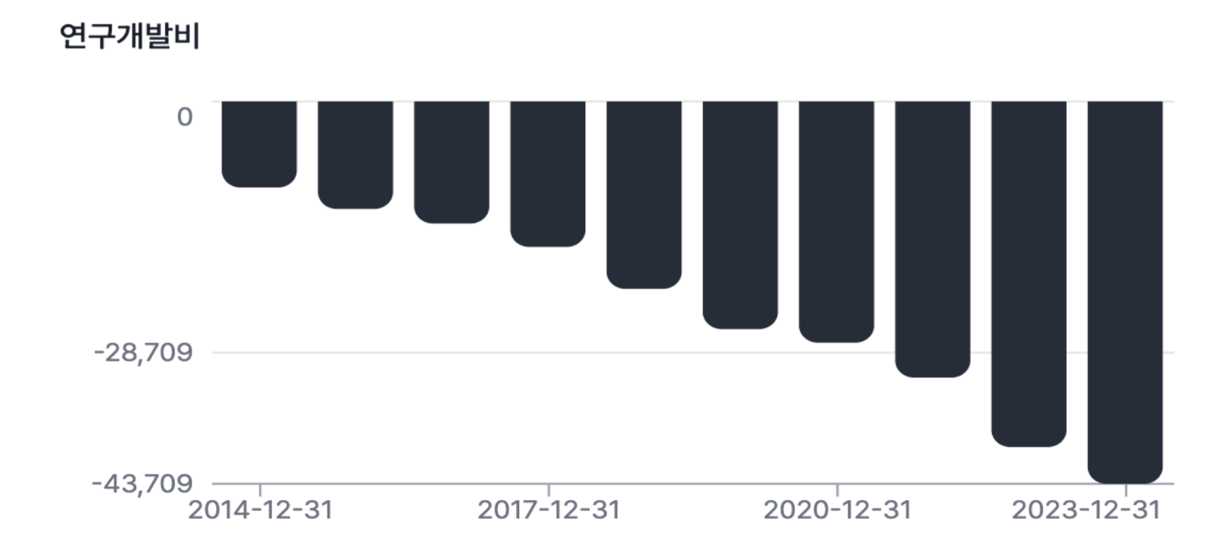 R&D 에 지속적으로 투자하고 있으며 20년, 23년 매출 성장률이 둔화될때 회사의 미래를 위해서 R&D 에 꾸준히 투자했음