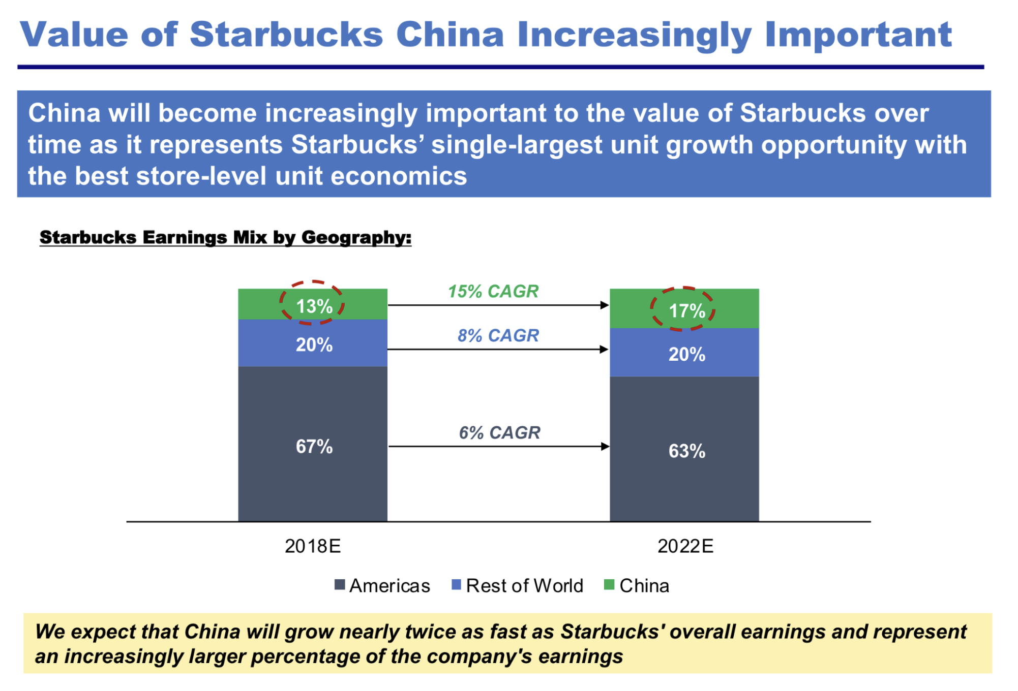 중국은 시간이 지나면서 전체 회사에서 점점 더 큰 비중을 차지하게 될 것입니다. → 이때는 미중 갈등이 이지경이 될줄은 ㅠㅠ 중국에서 매장의 수익성이 유지되면서 점포가 얼마나 늘어나는지가 미래 주가의 핵심이 될 것 같음(버핏이 TSMC 를 매수했다가 매도한 것이 생각남)
