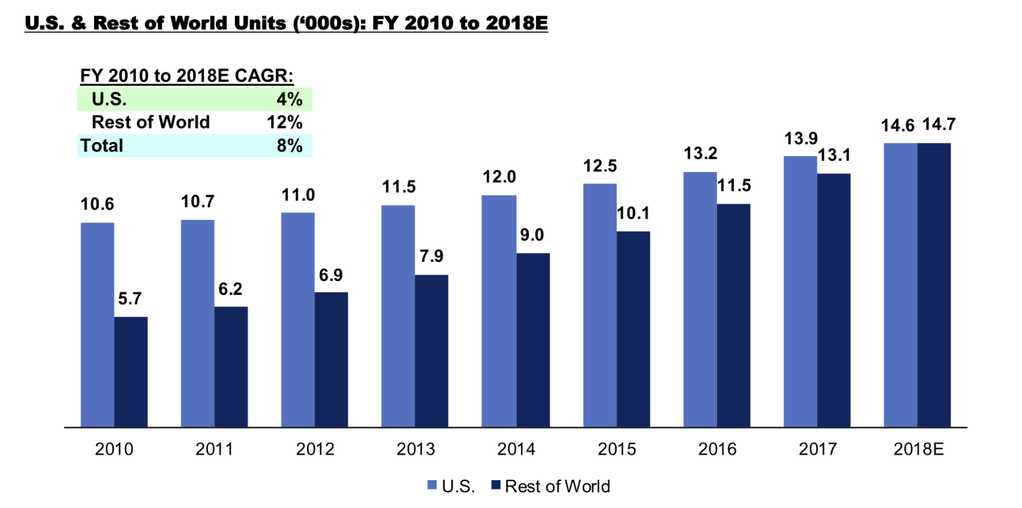 분해해보면 미국보다 미국 이외지역 성장률이 더 빠름