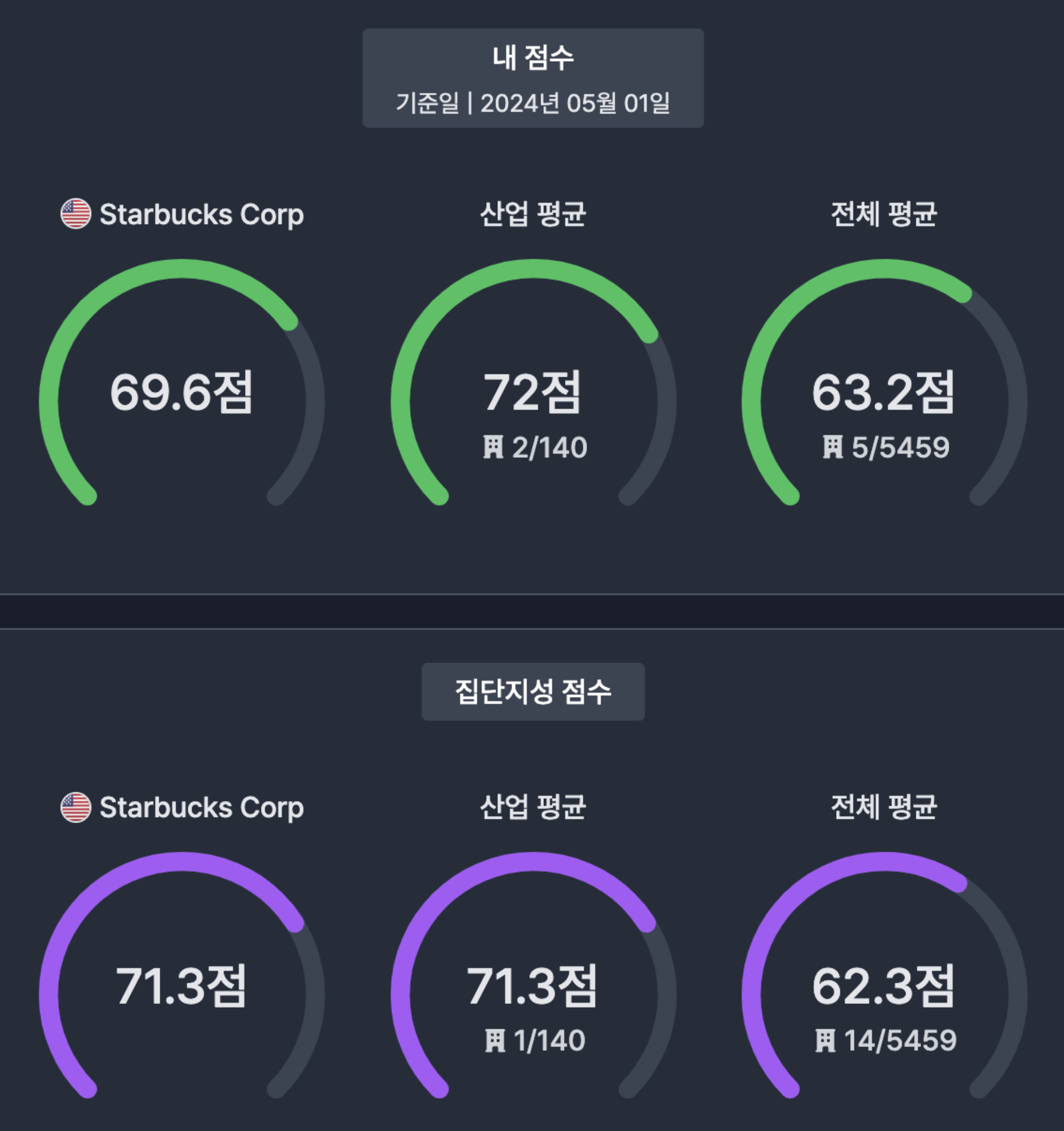 스타벅스 : 15(매수), 46.5(매도)