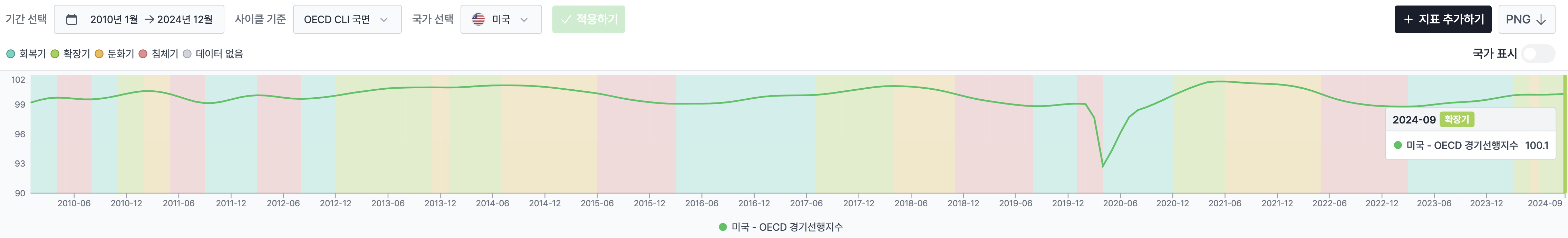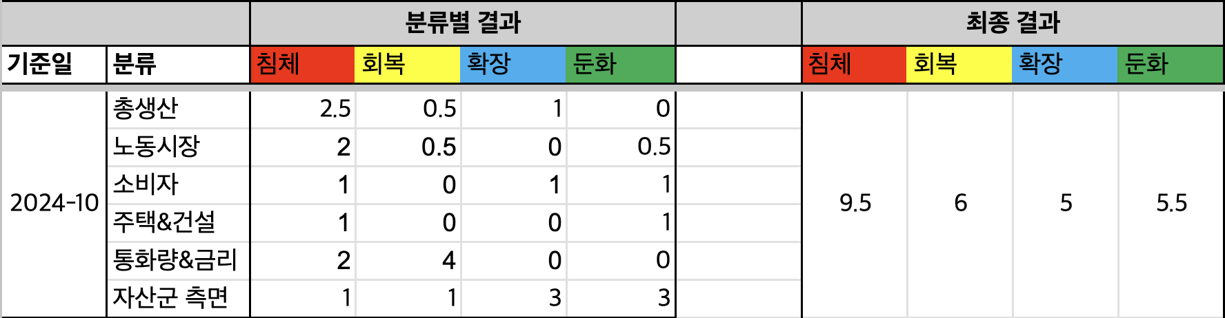 확장기가 더 이어질지 확장기에서 침체기로 갈지는 모르겠으나 경기 국면을 기반으로는 서로 다른 결과가 나왔으므로 크게 가중치를 두지는 않음