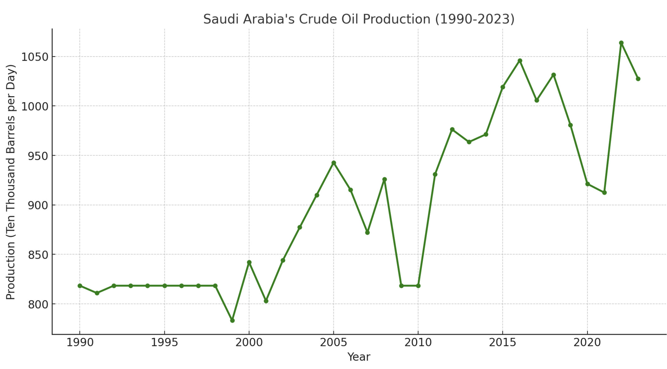 유가 상승에 따른 생산 확대: 2022년 러시아-우크라이나 전쟁이 발발하면서 에너지 시장의 불확실성이 커졌고, 이에 따라 원유 가격이 급등했습니다. 유가 상승으로 인한 수익을 극대화하기 위해 사우디아라비아는 생산량을 늘렸습니다.