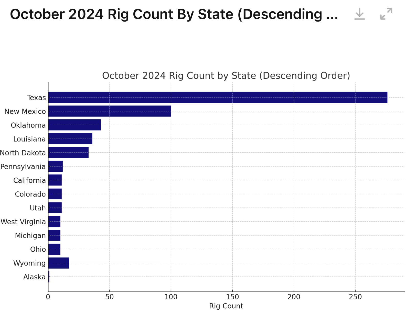 주별로 살펴보면 Texas, New Mexico 전체 유정의 64%를 가지고 있습니다.
