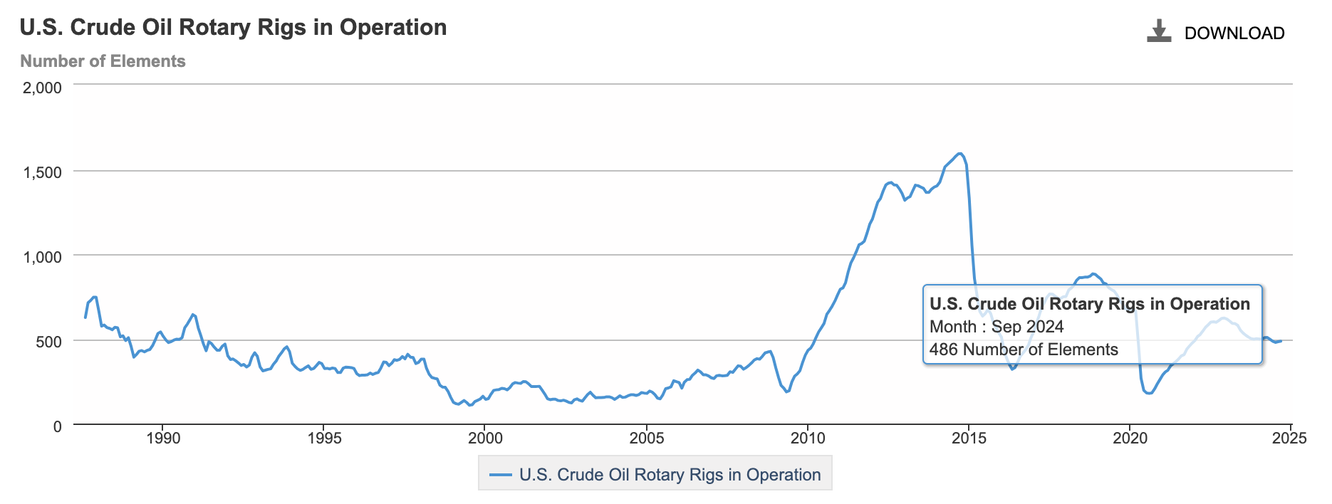 잘 알려진 Oil Rig Count(석유 시추 장비 수) 부터 보겠습니다.