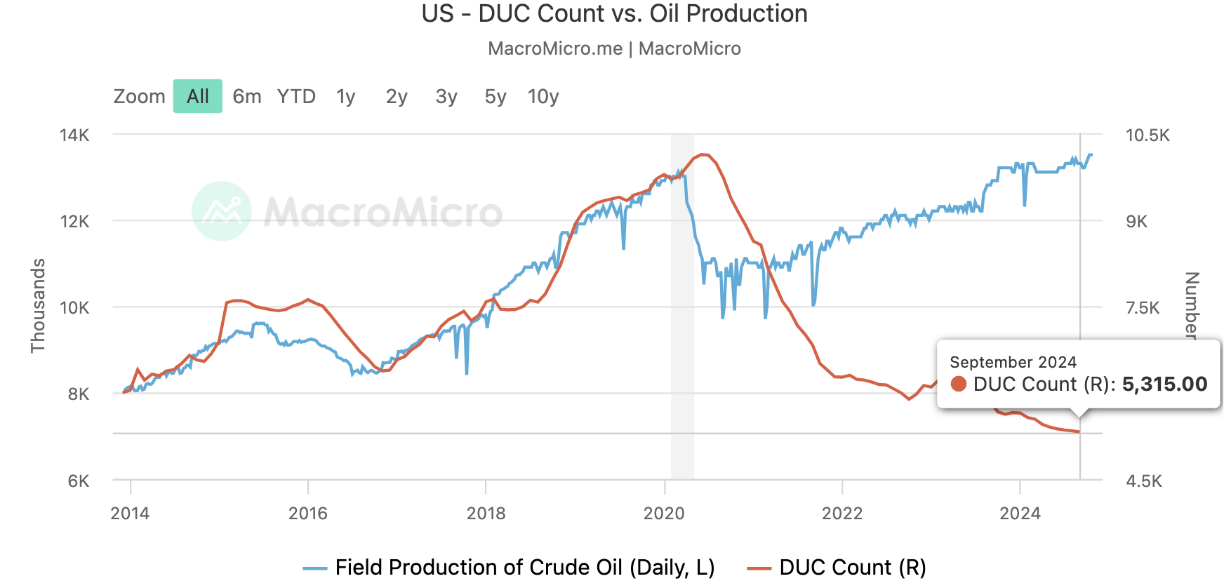 만약, 석유 시추도 주춤하고 DUC 까지 고갈되는 상황이 발생할때 수요가 급증하는 이벤트가 발생하면 석유 가격이 급증할 수 있겠네요.