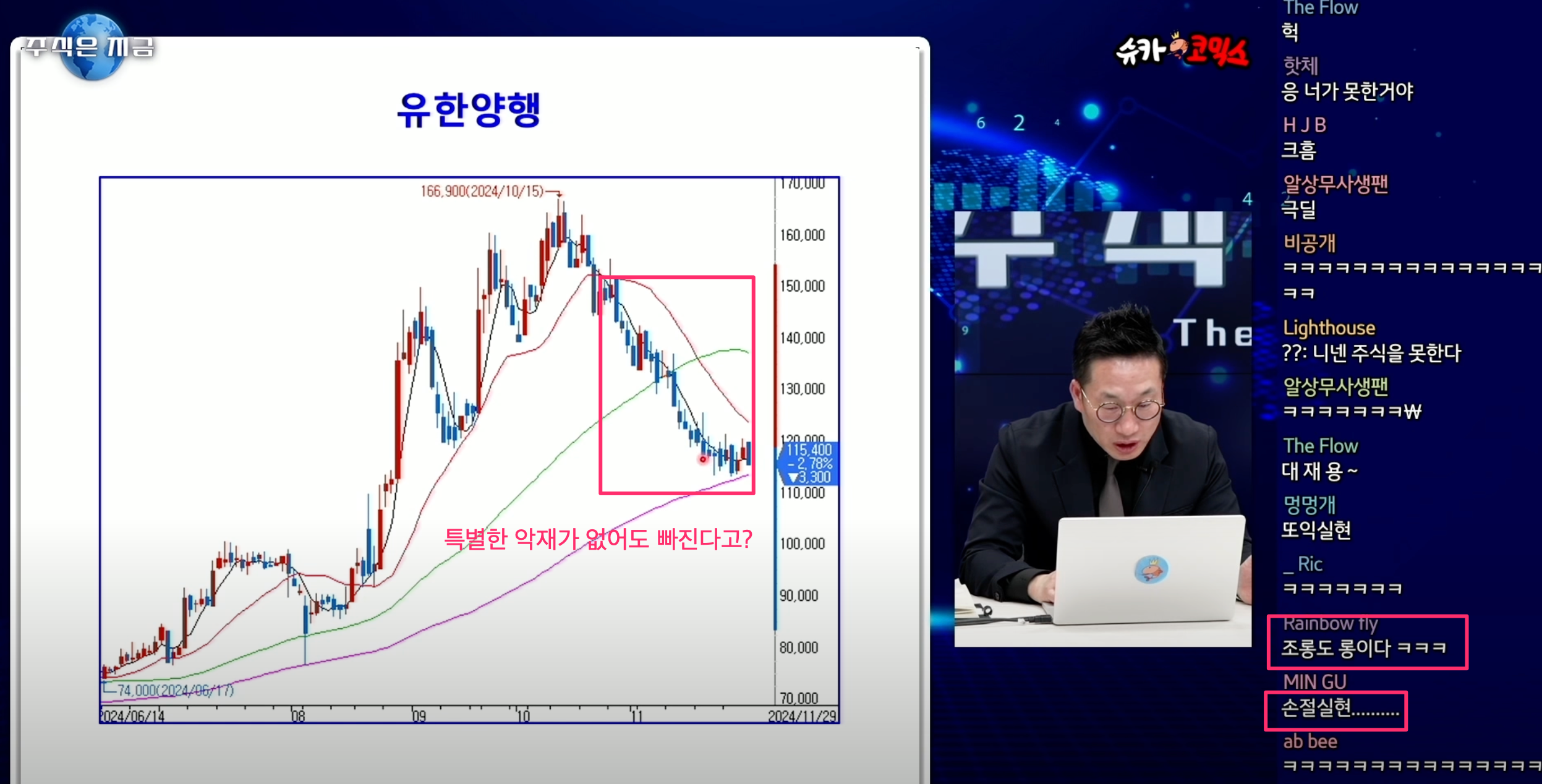 • 가끔 나오는 유한양행인데 특별히 악재가 있어서 떨어지는게 아니라 호재가 끝나면 유동성이 부족해서 차익실현하고 다른 테마로 이동하느라(장기 투자자 X) 빠진다고 합니다. 미국으로 치면 애플이 실적 발표라는 호재가 끝나면 기본적으로 우상향이 아니라 밑으로 흐른다는 건데 너무너무 어렵네요.