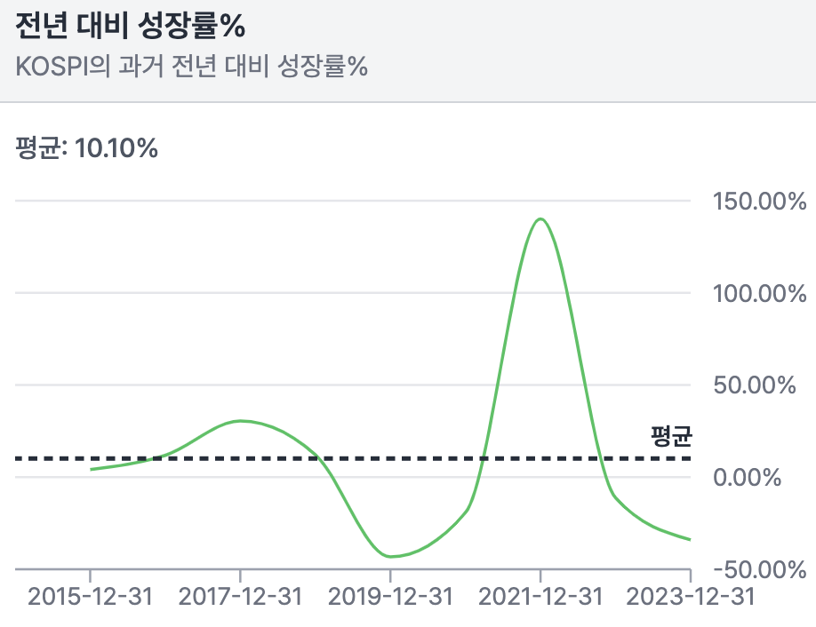 • 배당+바이백 수익률: Valley AI 기본값 사용(10년평균값 사용) 4.52%를 사용하려고 했는데 S&P 500, KOSPI 모두 4.52%의 배당+바이백 수익률이 나와 오류가 있는 것 같아서 2.2%를 사용