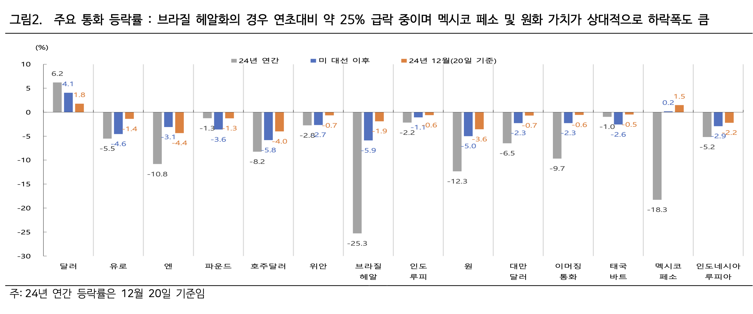 폭락순서: 브라질 헤알 > 멕시코 페소 > 엔 > 원
