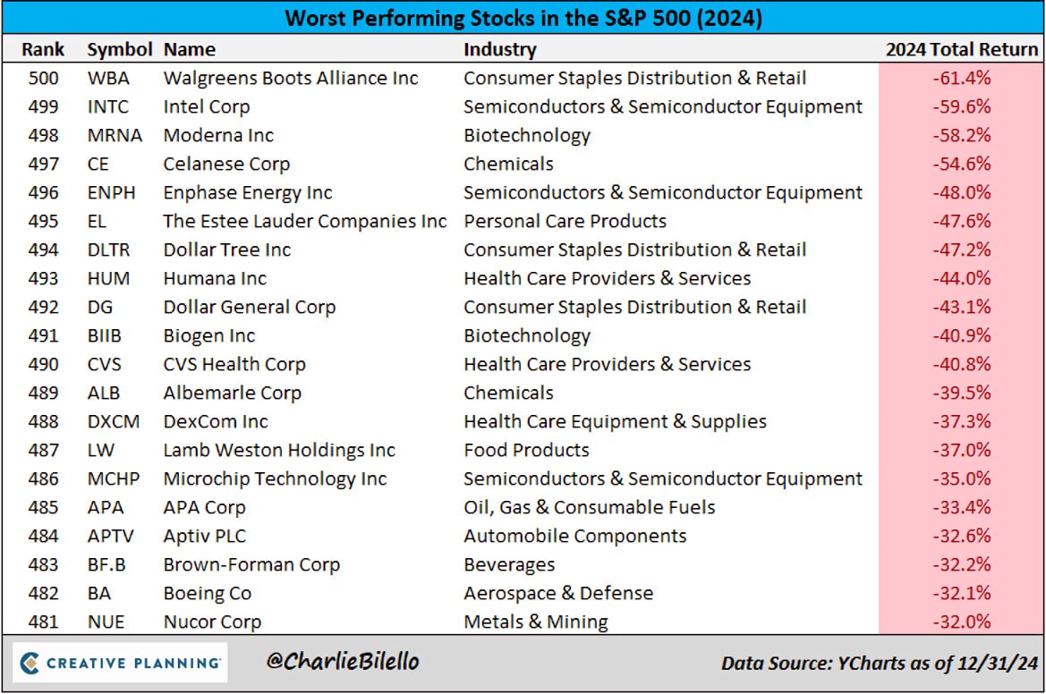 작년 S&P 500에서 최악의 성과를 보인 주식