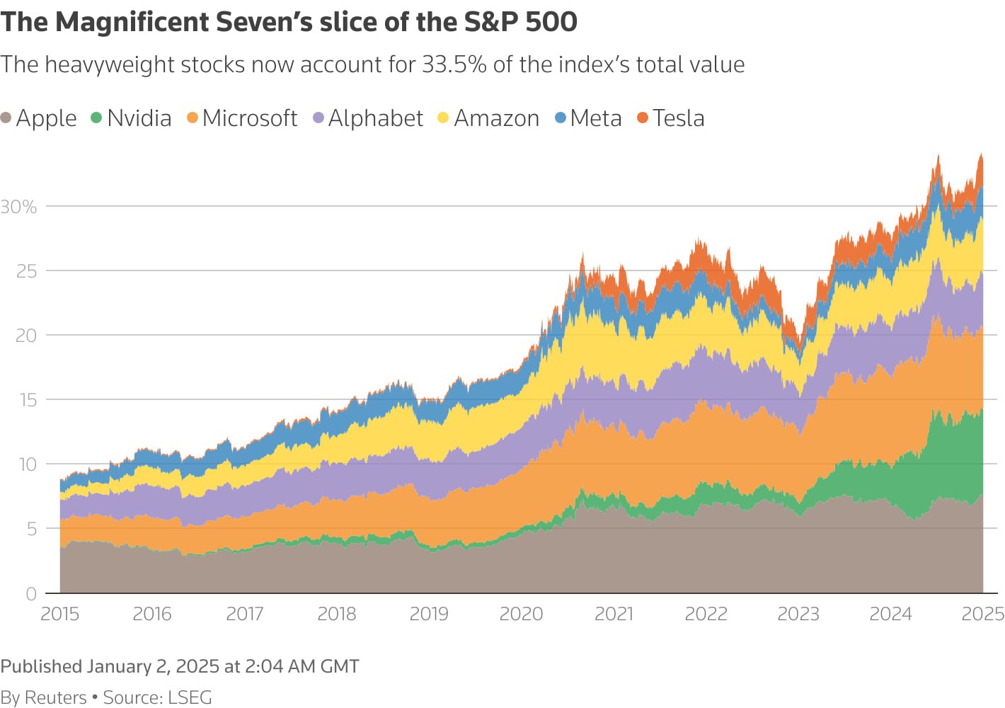이 대형주들은 현재 지수 전체 가치의 33.5%를 차지합니다.