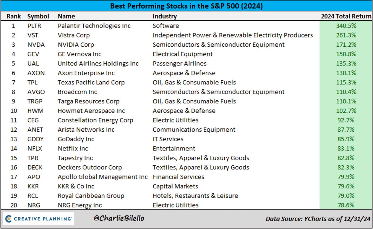 작년 S&P 500에서 가장 좋은 성과를 보인 주식