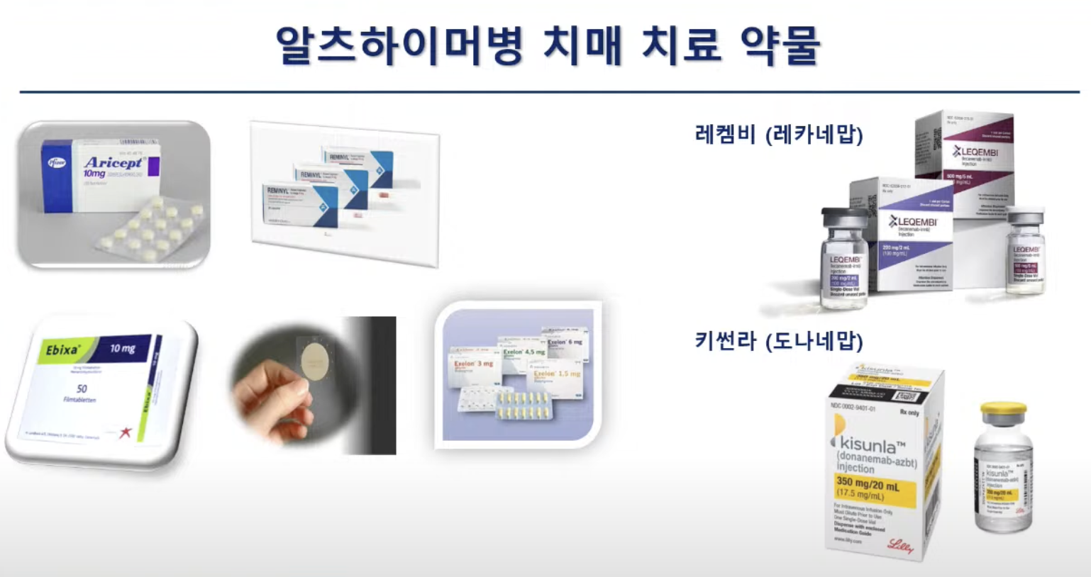 레켐비: 치매 전 단계 또는 경증 알츠하이머병 환자. → 중요한 건 증상이 없어도 알츠하이머 병을 가지고 있을 수 있음. 치매 전 단계에 사용할 수 있는 약물.