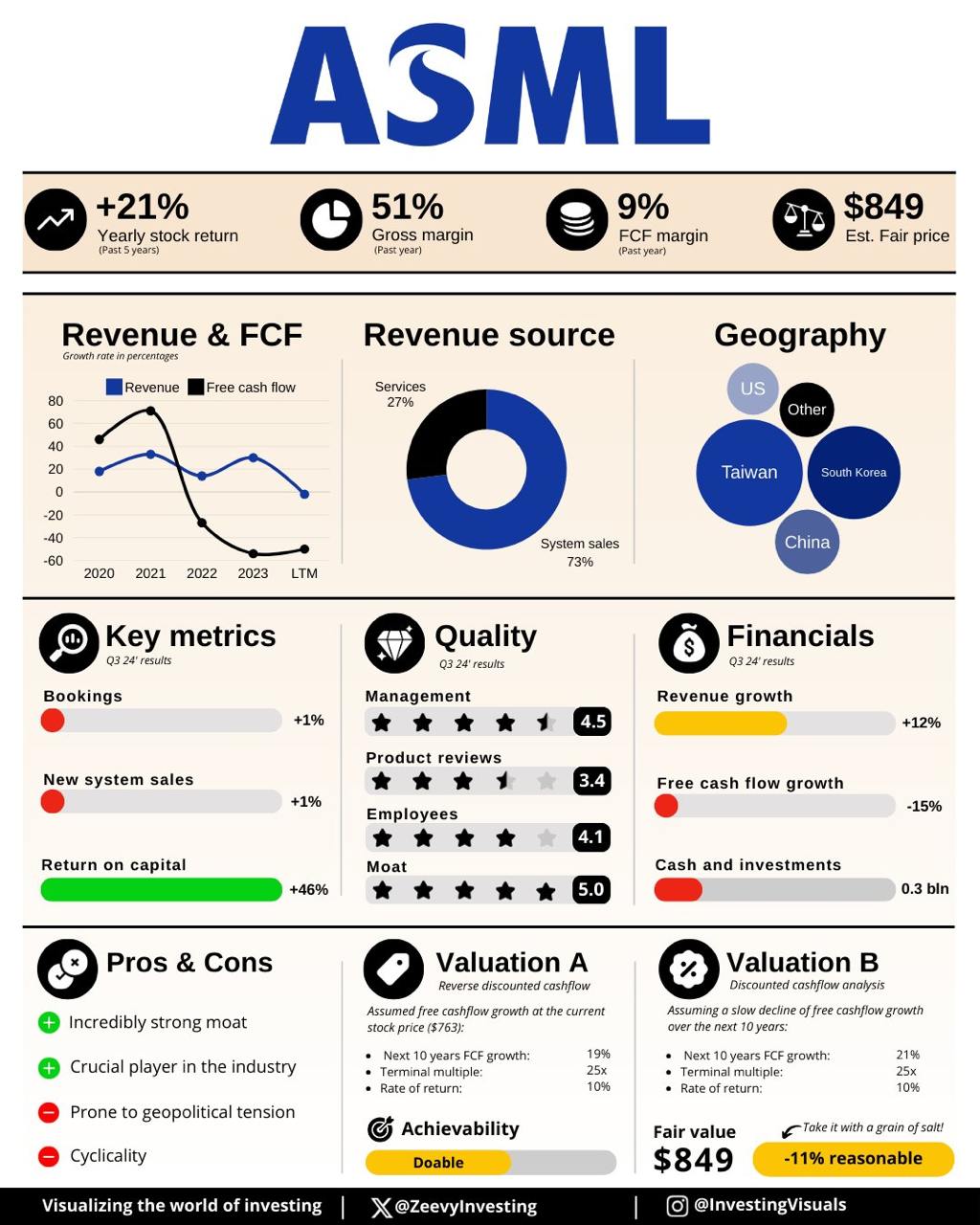 #1 - ASML $ASML : $NVDA , $AMD , $TSM 의 모든 최첨단 AI 칩은 $ASML 기술에 의존합니다. 이는 AI 하드웨어 혁신의 중추입니다.