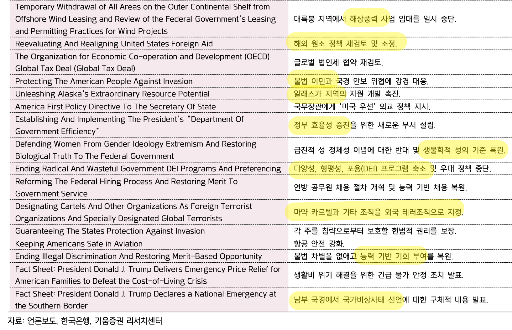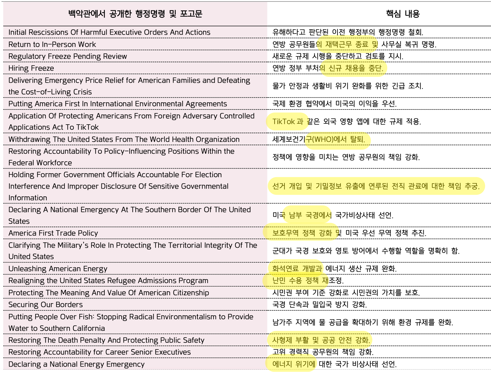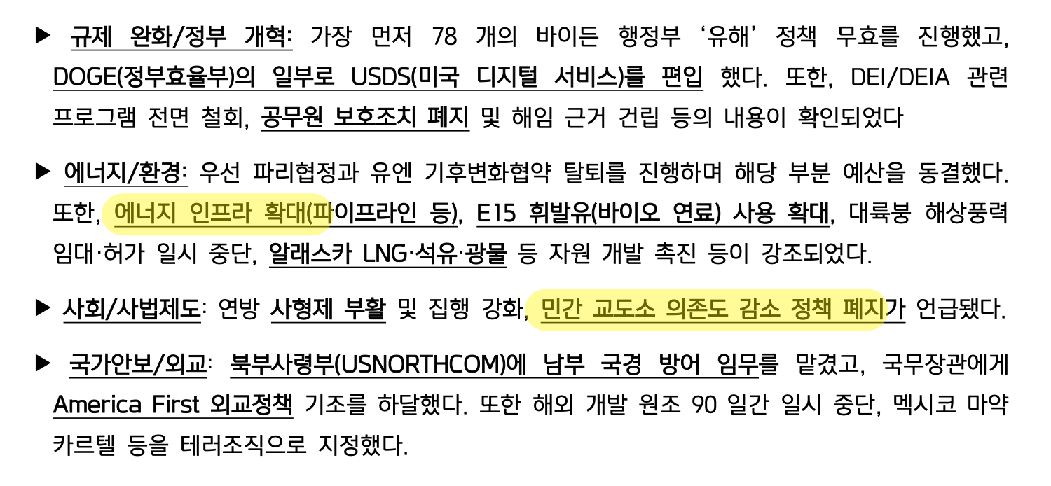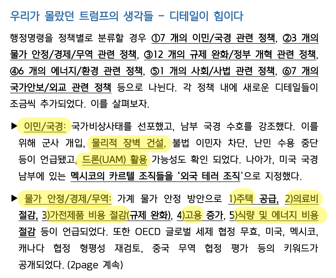 트럼프 취임 직후 공개된 행정명령 및 포고문 핵심 내용