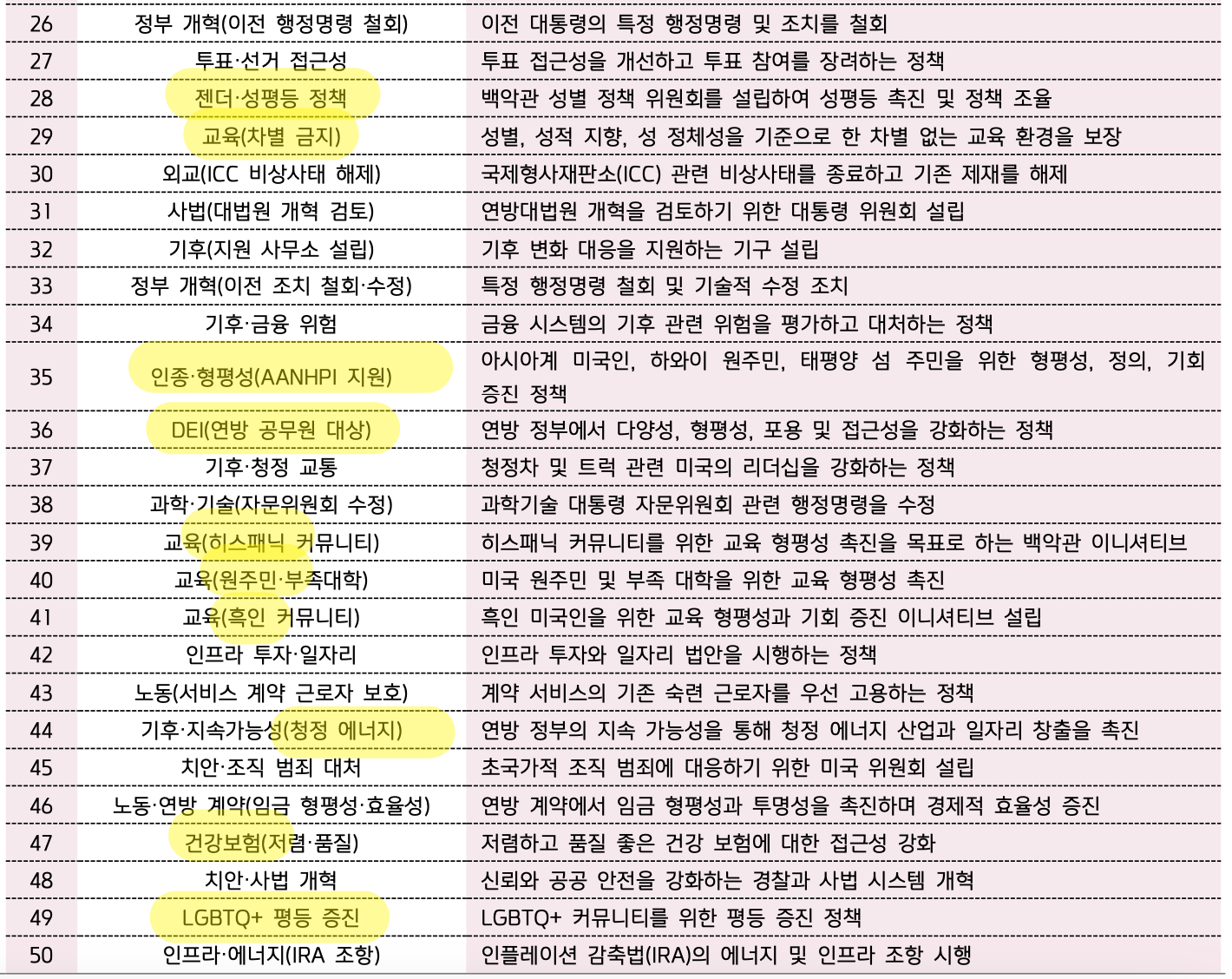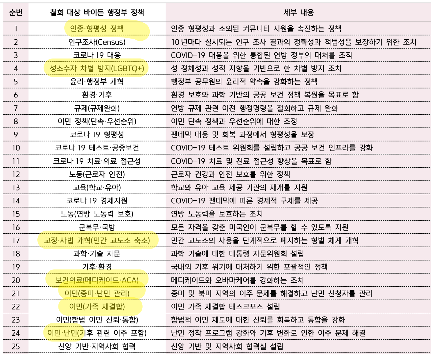 철회 대상 바이든 행정부 정책