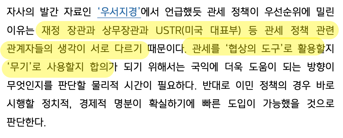 관세에 대해서는 아직 논의중