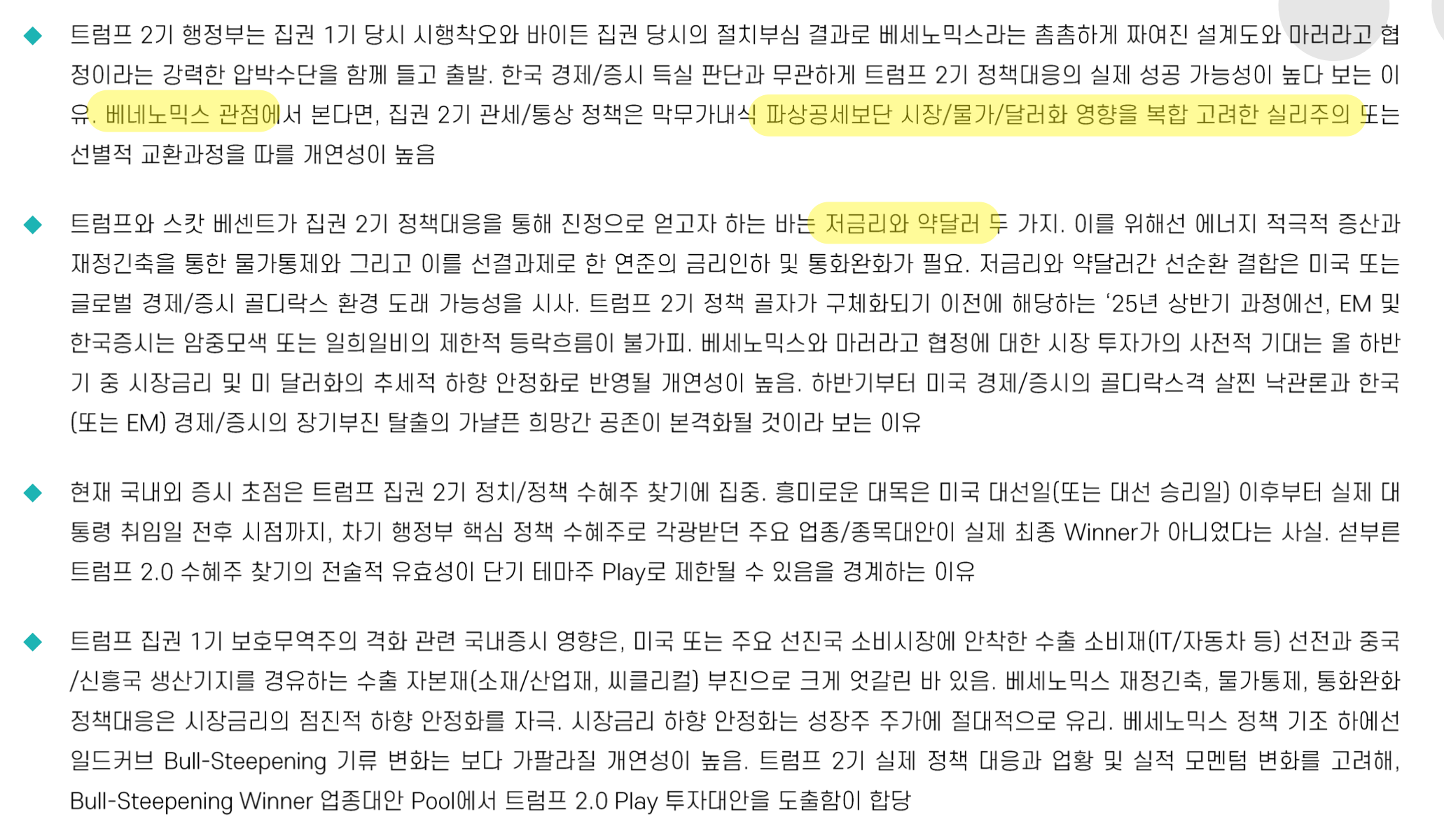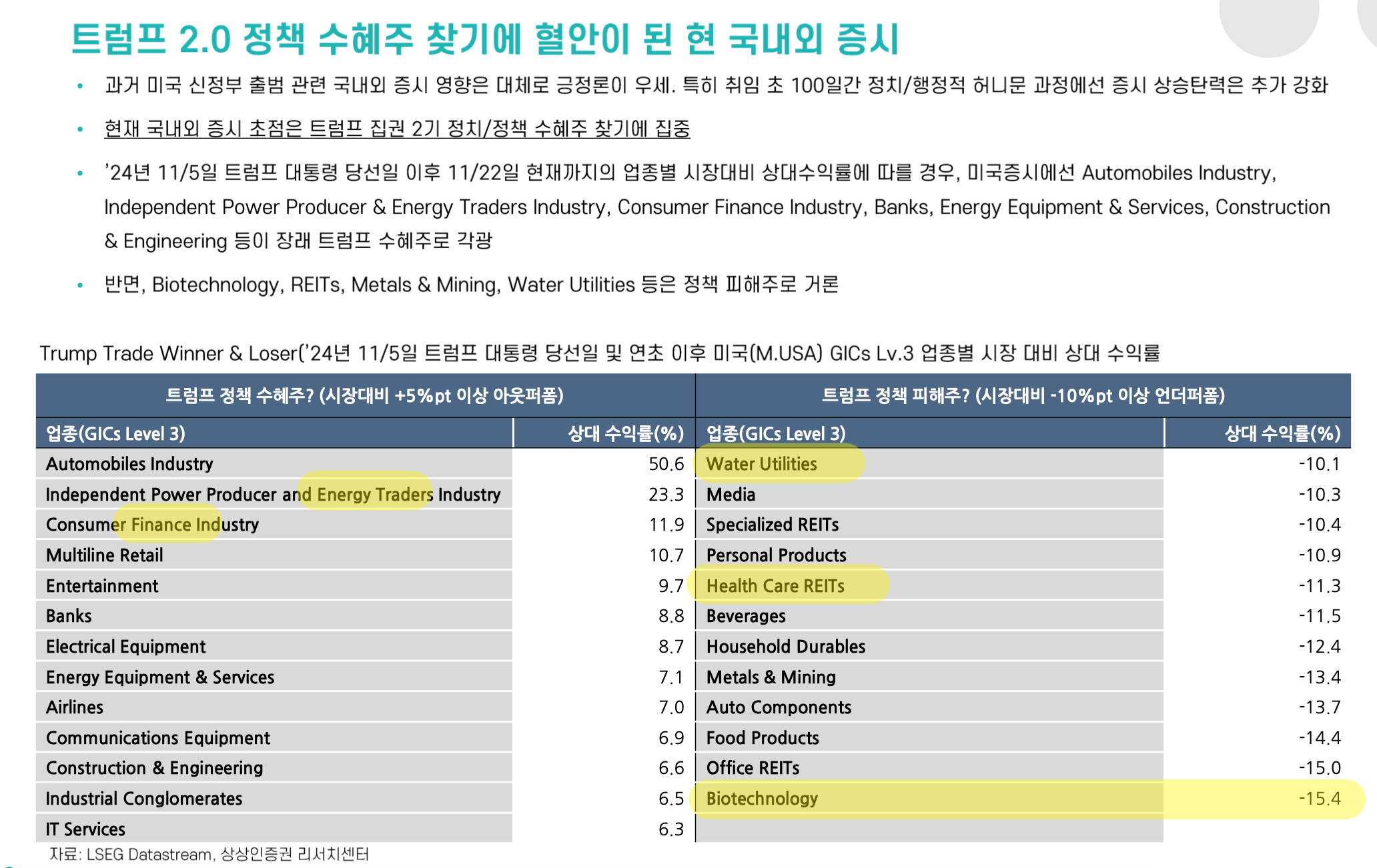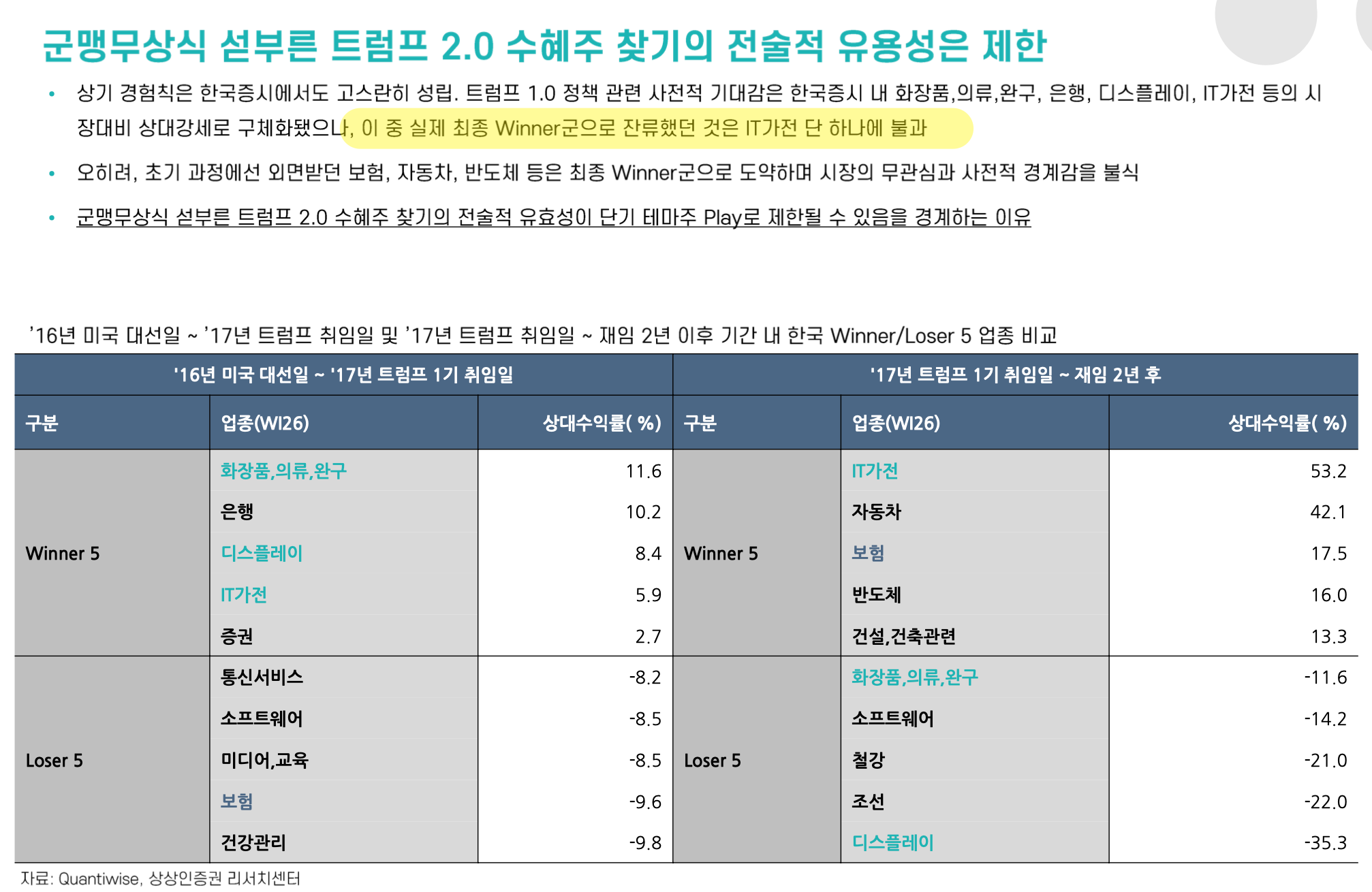 앞선 페이지에서 미국의 사례도 나왔지만 트럼프 2.0 수혜주로 예상한게 꼭 맞지 않다는 것
