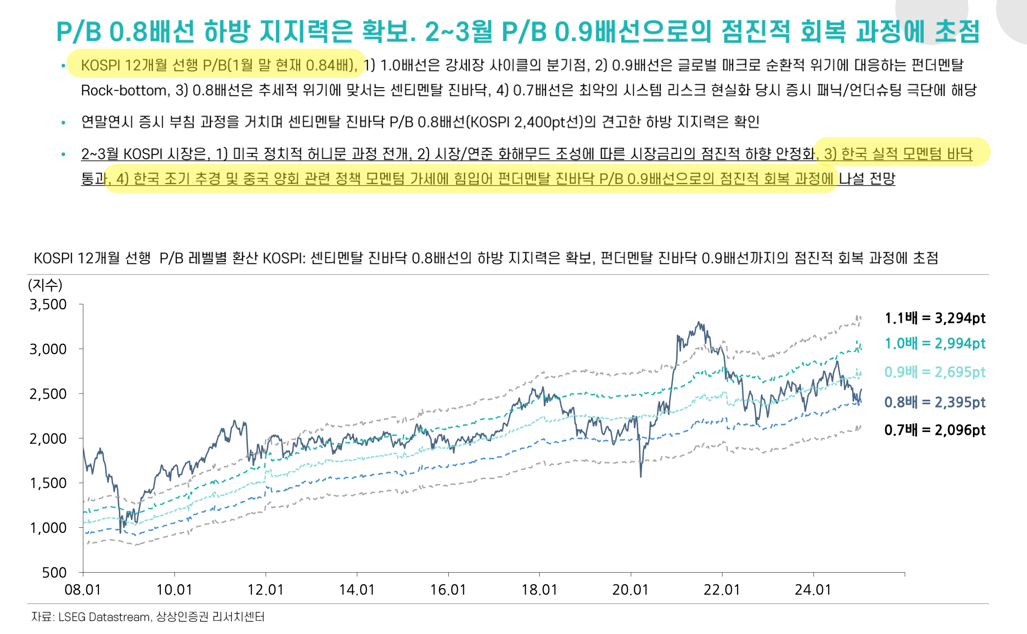 증권사에서는 1) 실적 모멘텀 바닥 2) 한국 조기 추경 및 중국 양회 = 점진적으로 주가가 회복할 것으로 기대