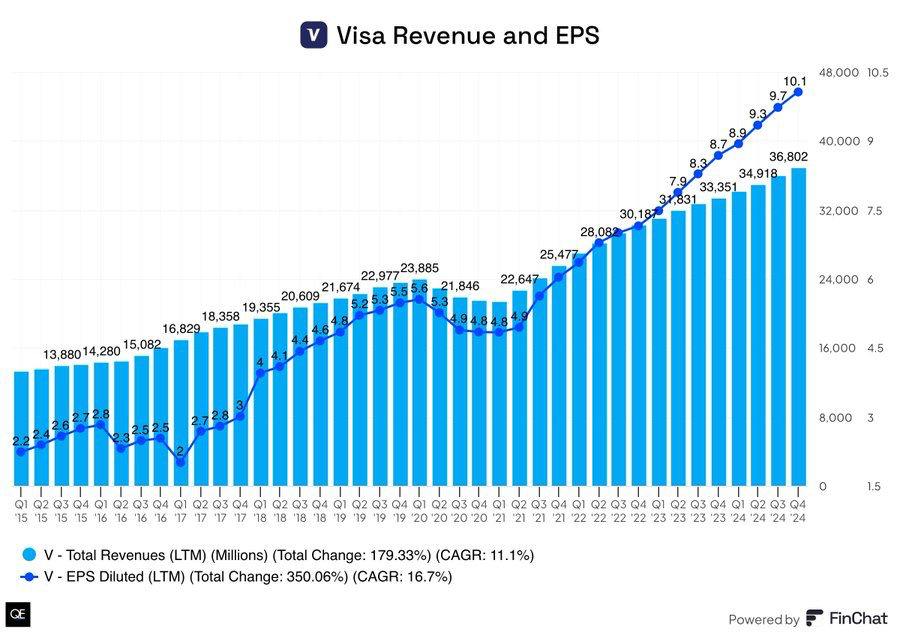 $V Visa와 $MA Mastercard는 모두 디지털 결제로의 지속적인 전환으로 혜택을 받으며 글로벌 결제를 계속 지배하고 있습니다. 핀테크, 암호화폐 결제, 대체 결제 방법의 부상은 위험을 초래하지만, 두 회사 모두 핀테크 스타트업을 인수하고 파트너십을 확대하여 완화하는 데 적극적이었습니다.