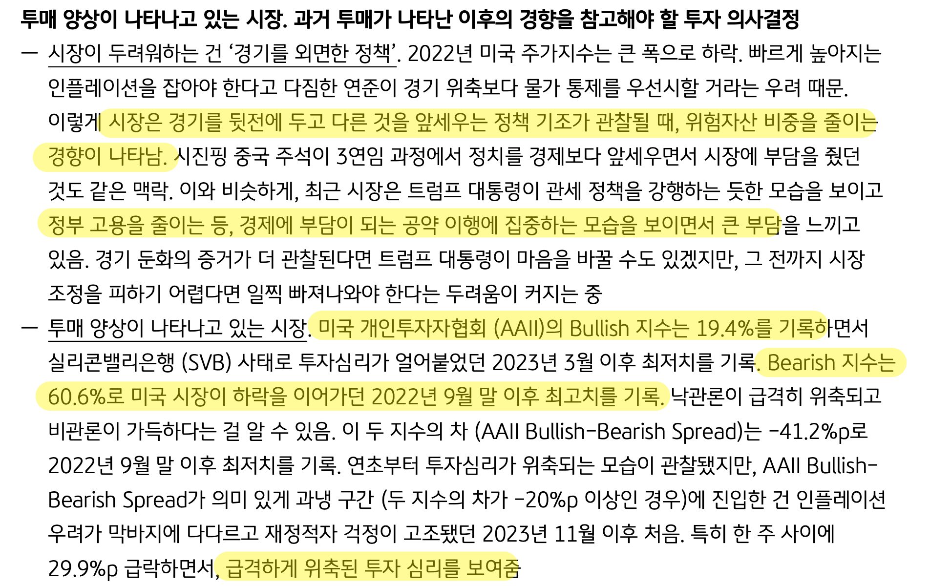 AAII Bullish-Bearish Spread 가 말하는 것 → 공포에 팔지 마라