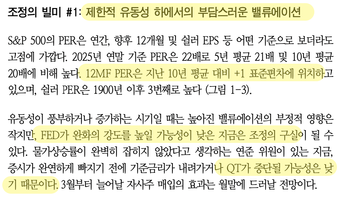 FED 에서는 긴축을 하고 있어서 유동성은 줄어드는데 밸류에이션은 부담스러운 위치