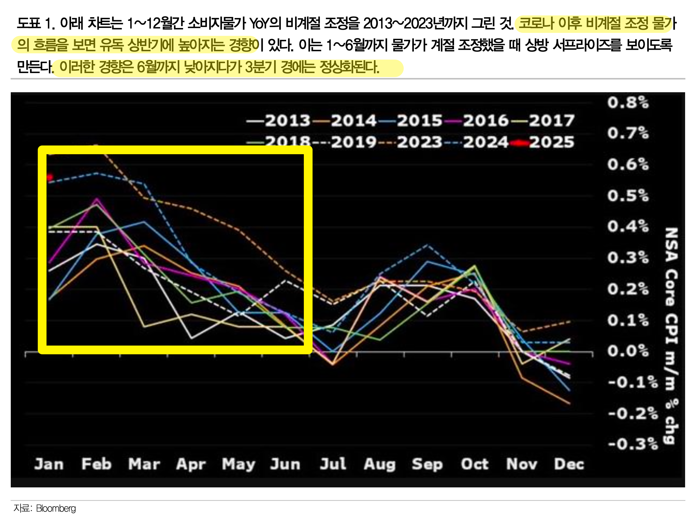 확실히 상반기에 비계절 조정 물가가 높은 경향이 있네요