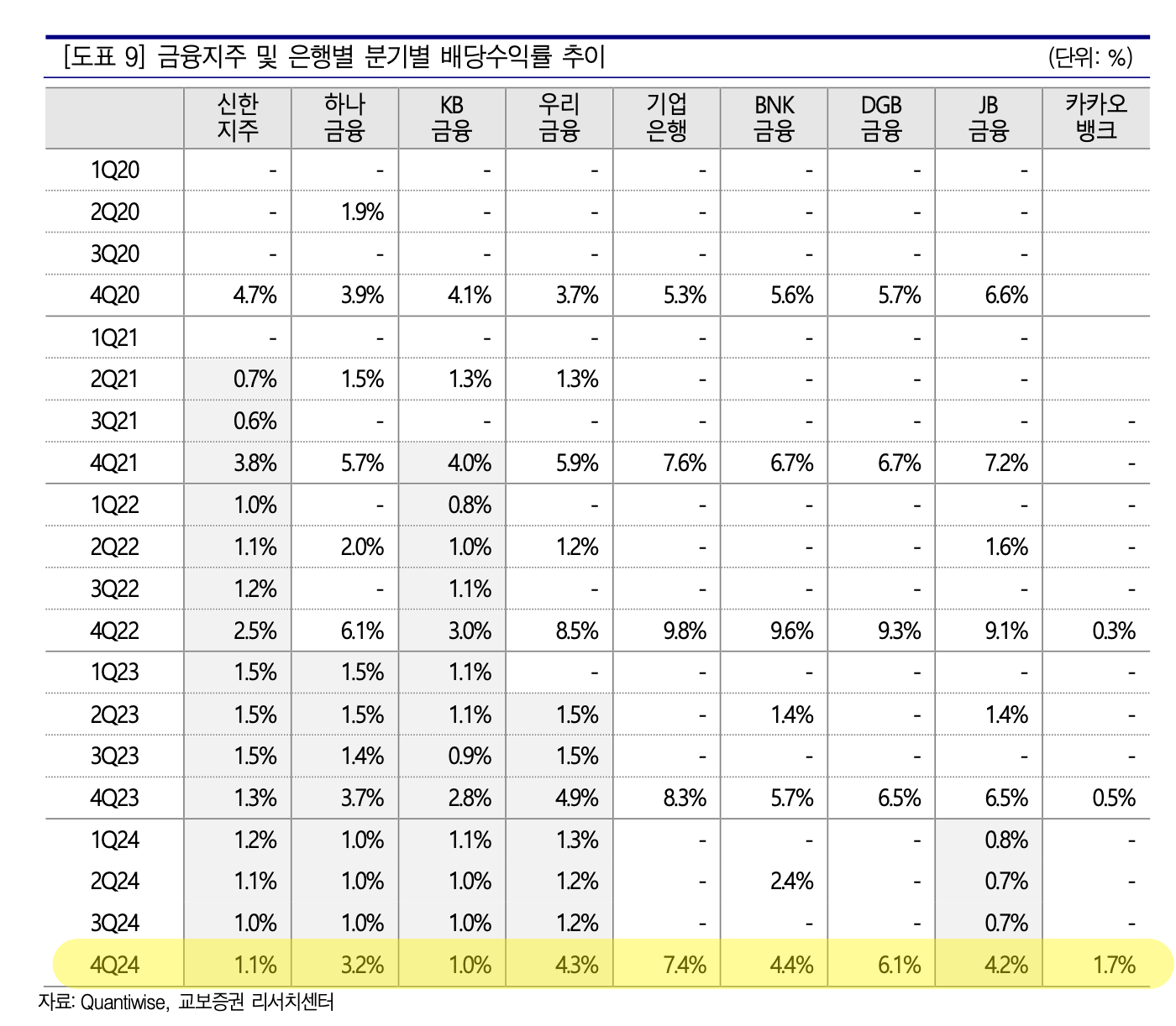 • 2025년 들어서는 국내 정치적 불확실성이 은행의 기업가치제고 계획, 즉 밸류업 프로그램에 대한 지속 가능성에 대해 우려감이 대두되면서 주가가 부진한 모습