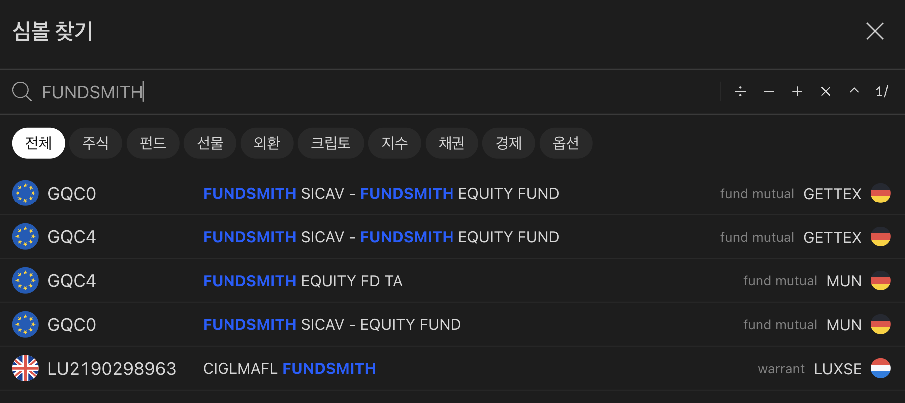 트레이딩뷰에서 검색해보면 Fundsmith 가격이 나옵니다.