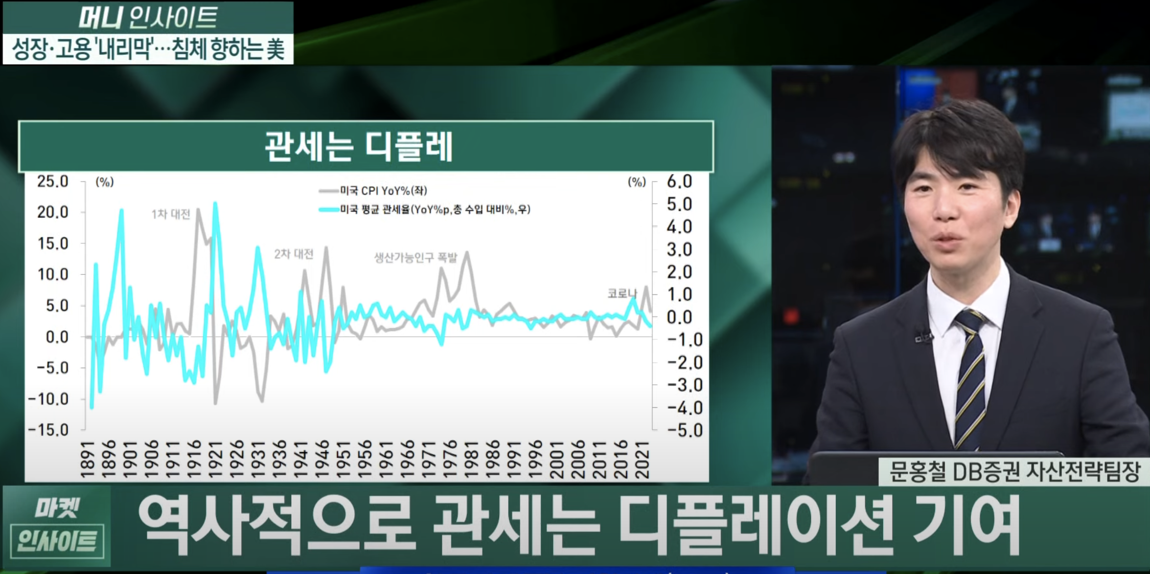 "美 경제, 관세發, '디플레 늪' 빠질 것 (문홍철) / 머니 인사이트"을 보다가 궁금해졌습니다. (하단 영상 내용 요약)