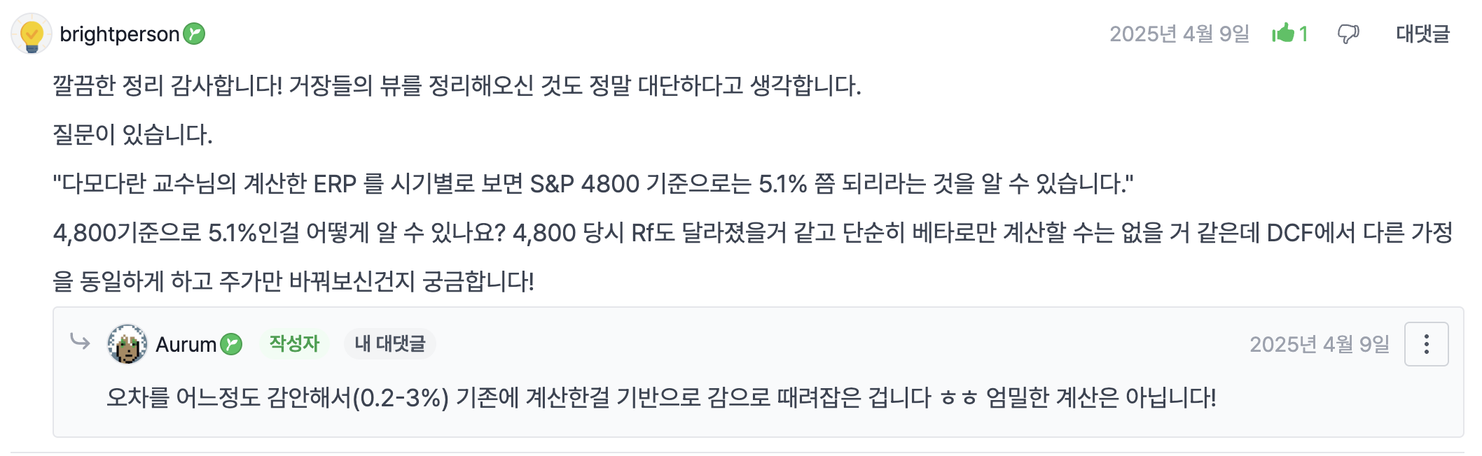 대충 찍은거: S&P 500 4800, ERP 5.1%