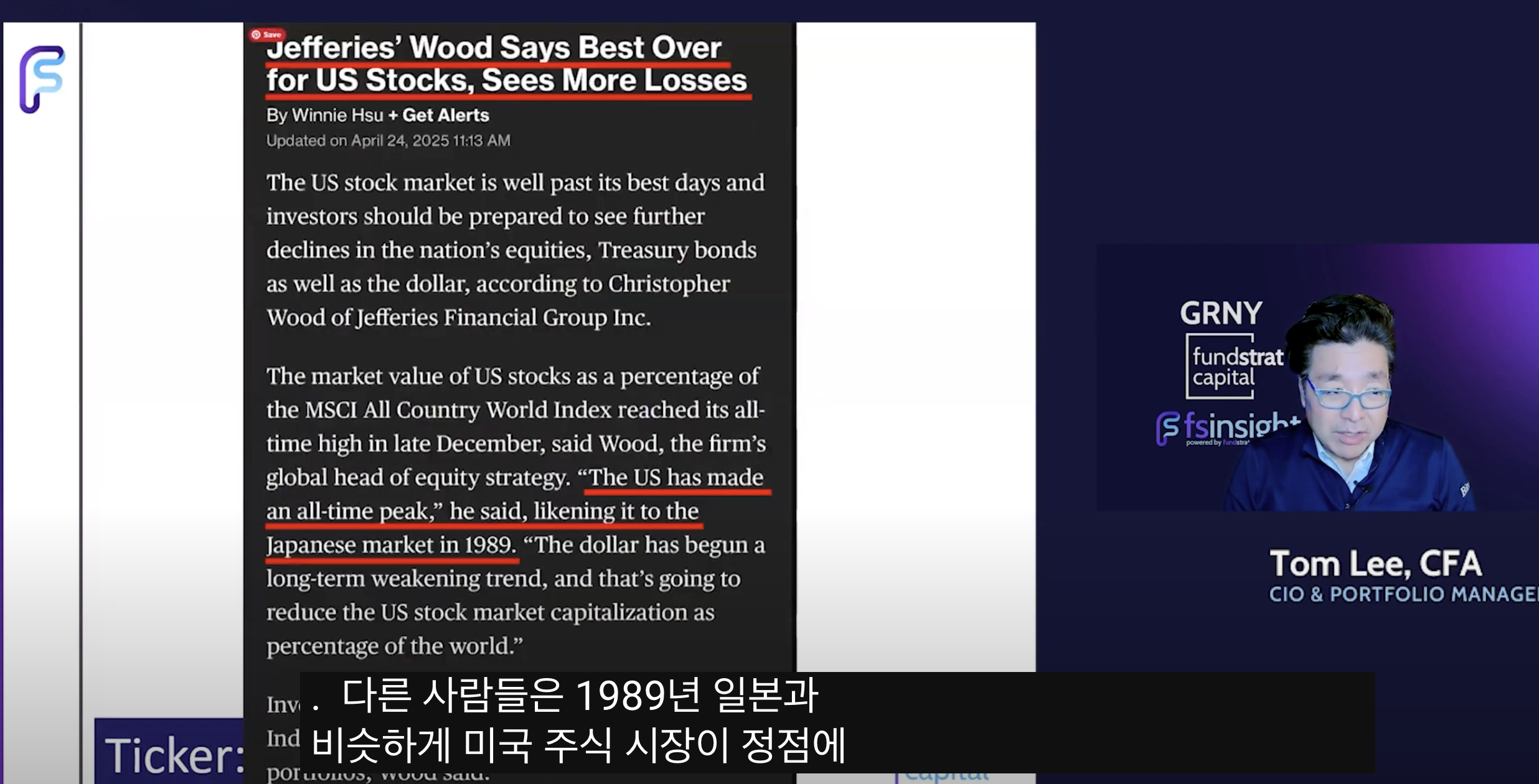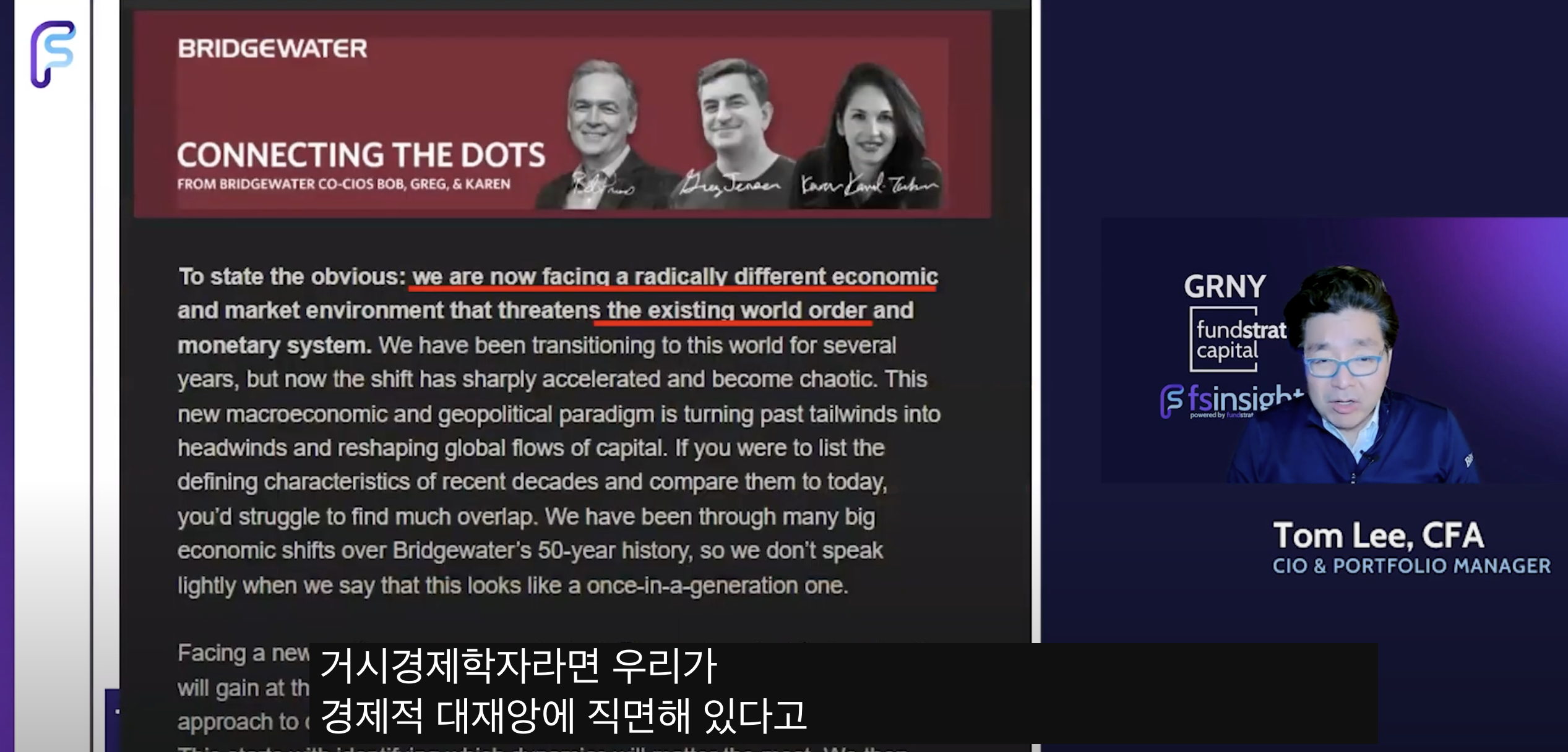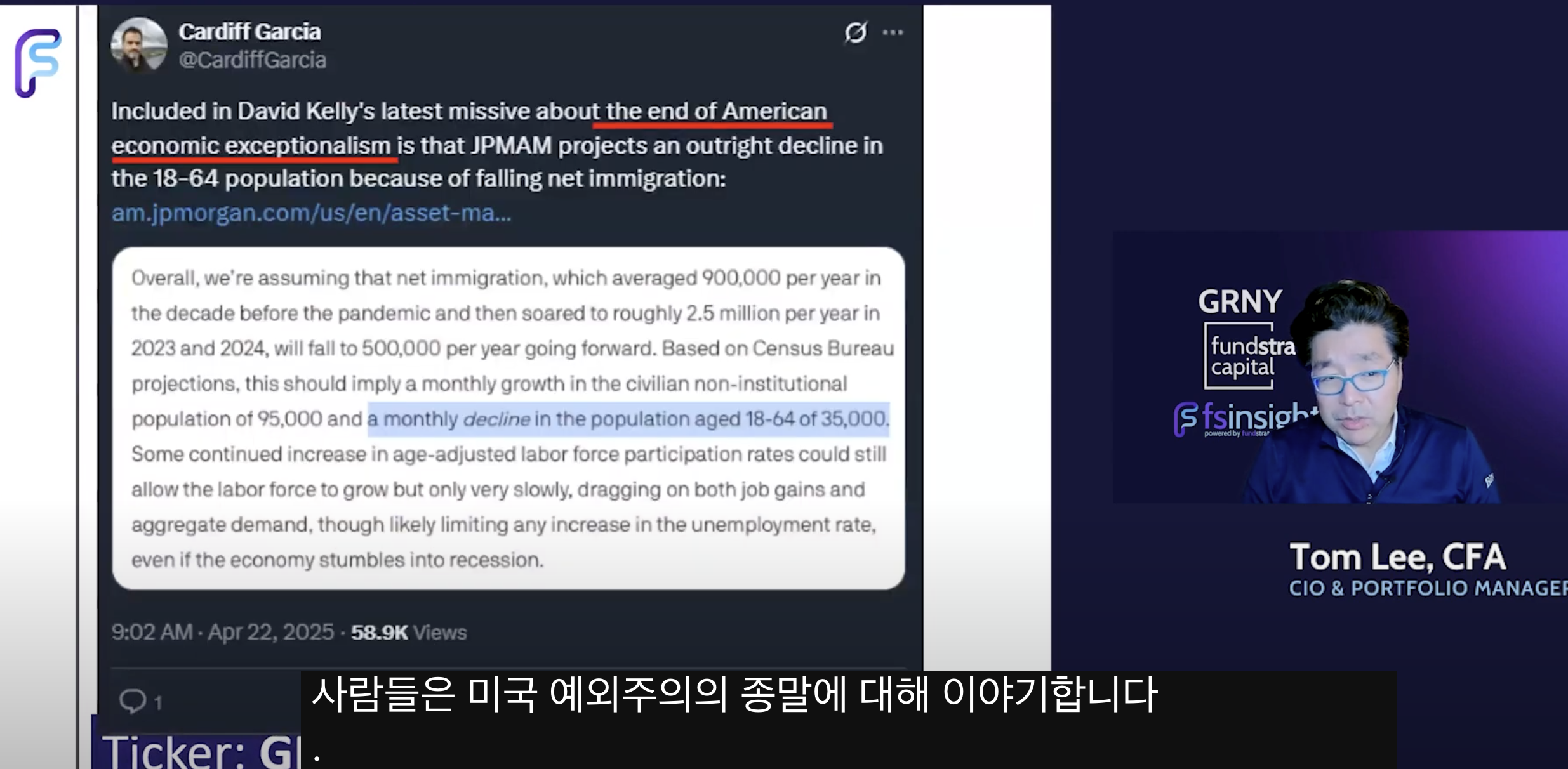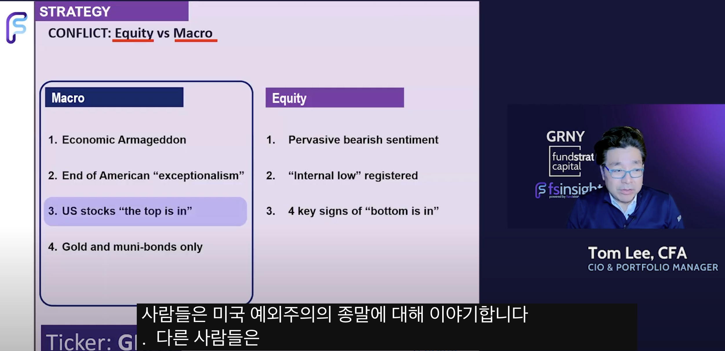• Tom Lee 견해: 30년 경력 중 가장 어려운 매크로 환경이지만, 경제는 여전히 견고함'