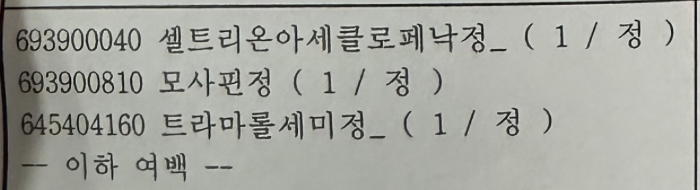 트라마톨세미정 (Tramadol): 중간 정도의 통증을 완화하기 위해 사용되는 오피오이드 진통제입니다. → 진짜 심각하지 않으면 안먹음