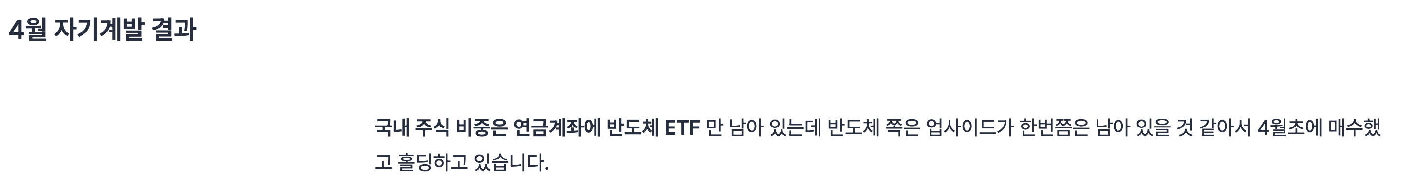 "4월 자기계발 결과"에서 공유드렸던 반도체 ETF 만 남아 있습니다.