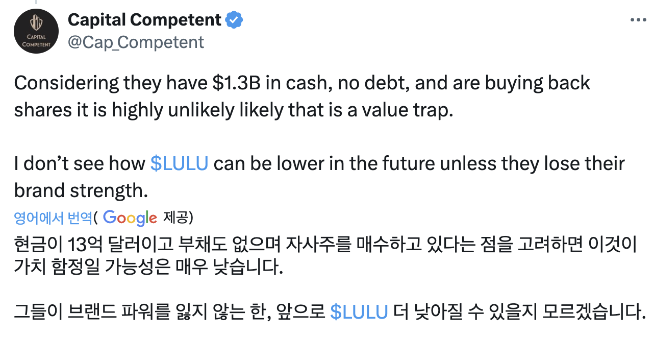 → 어떤 근거로 애널리스트들이 룰루레몬을 평가하는지도 체크해봐야겠습니다.