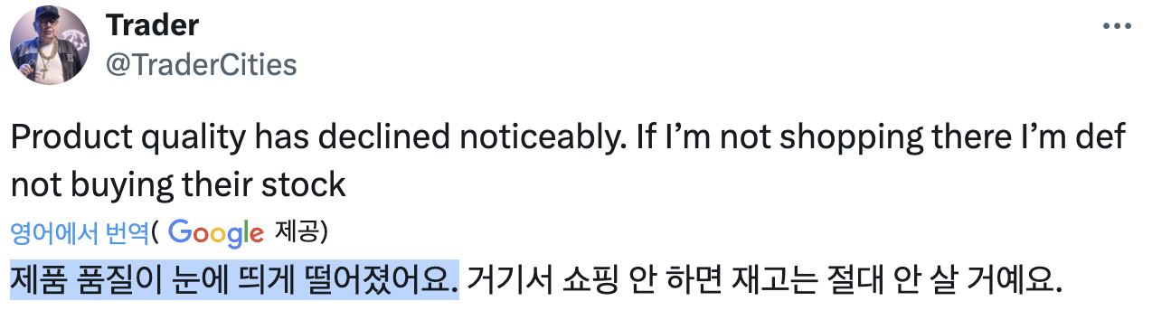2024년 4분기 9.4%에서 2025년 1분기 3%로 크게 감소했으며, 동일 매장 매출은 2% 감소를 기록했다1220. 이는 미국 소비자들의 신중한 소비 패턴과 경제적 불확실성의 영향으로 분석된다15.