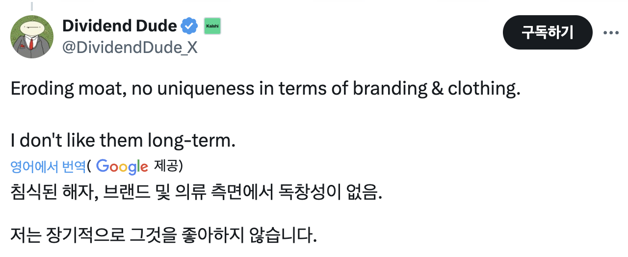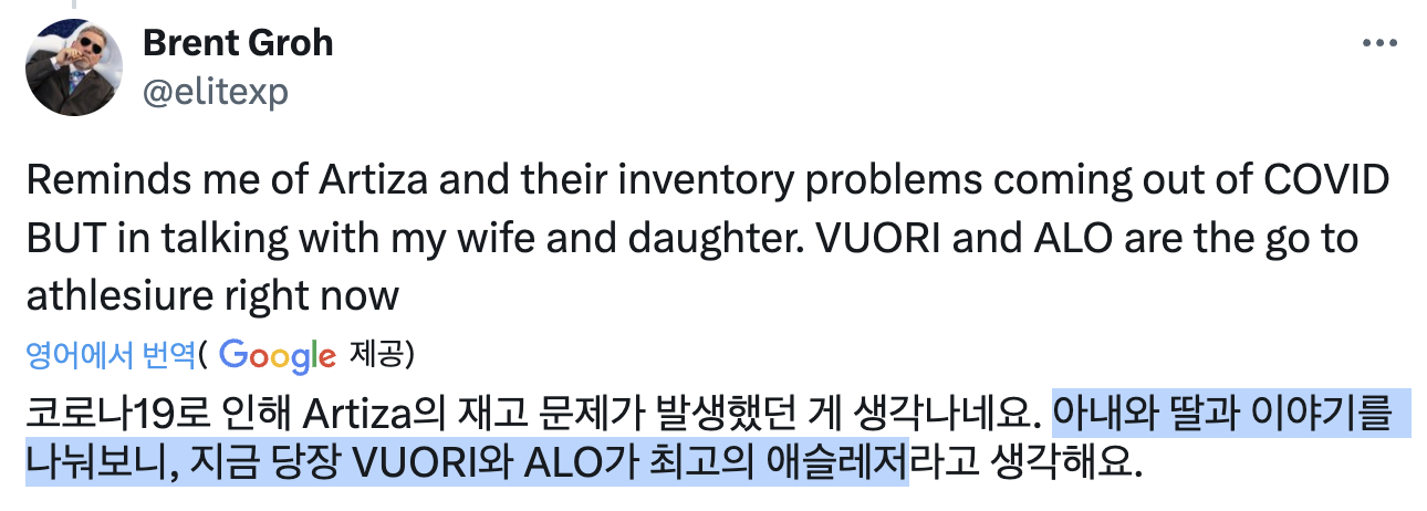 → 미국 경기 둔화 시 룰루레몬보다 알로 요가와 부오리의 매출 타격이 더 클 수 있음.