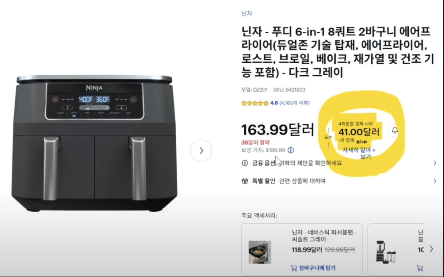 🍳 에어프라이어 ($163 → 4회 분할시 $41)