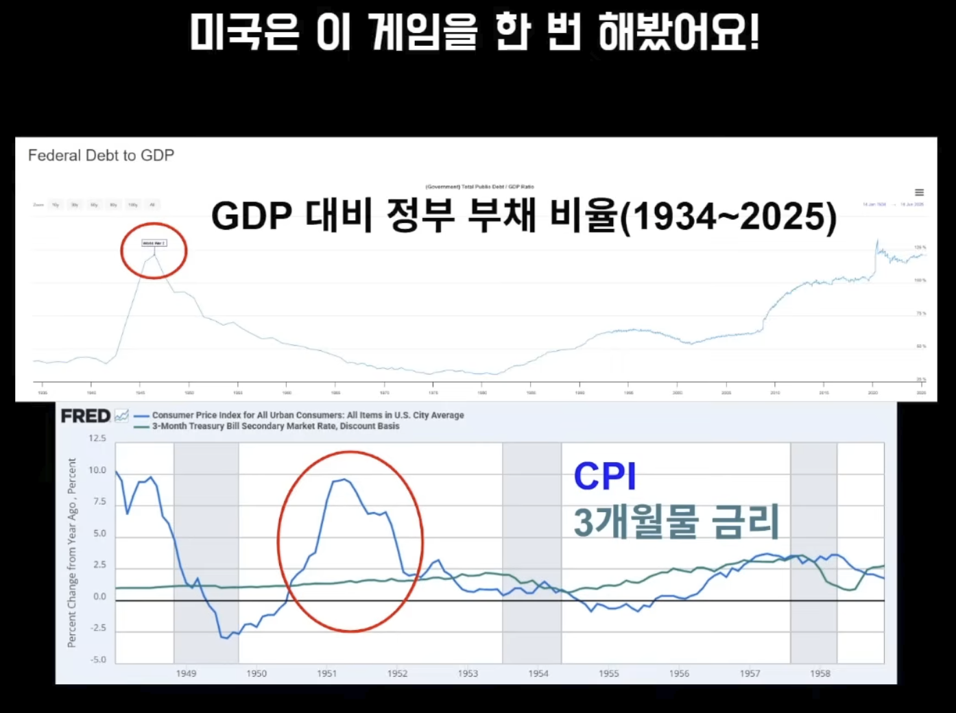 2차 대전 후 GDP 대비 정부부채 비율이 현재와 유사한 수준