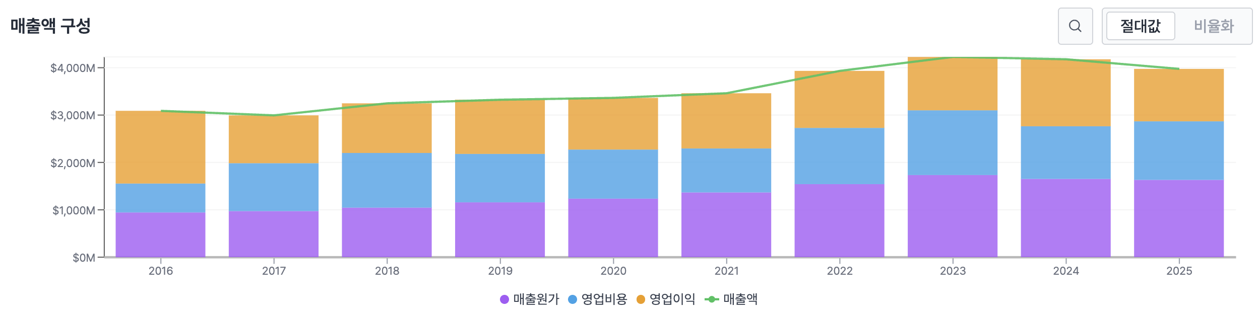 매출이 감소하고 있는 상황에서(트렌드가 변하는 상황) 가격적인 측면에서 저평가 되었다고 하더라도 시장의 관심을 가질 수 있을 것인가? 하는 의문을 해결하지 못하고 결국 매수하지는 않았습니다.