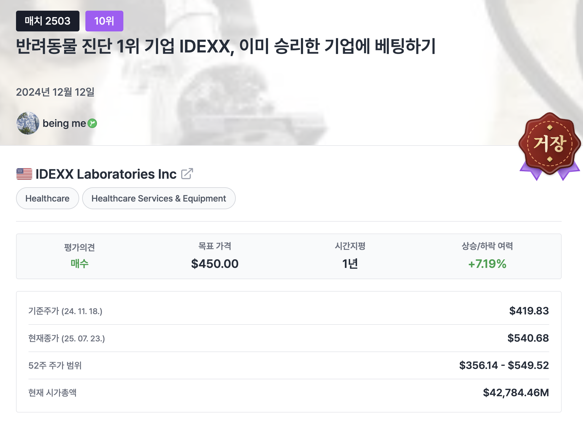 • IDEXX 가 9위에서 6위로 상승했음
