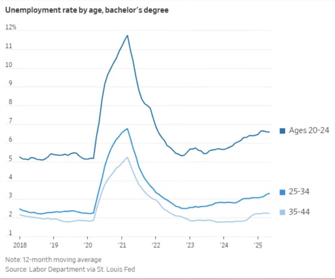 연속 실업수당 청구: 지속적 상승 (기존 직장인들이 AI에 대체)
