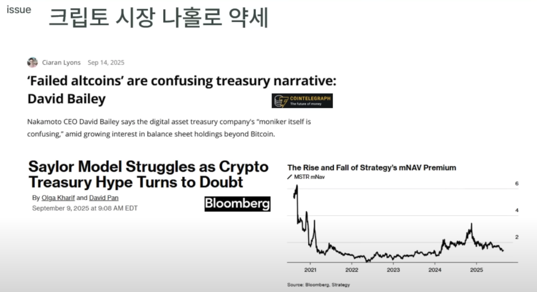 • 자금조달 비용 증가 💸: M-NAV 하락 시 추가 코인 매입을 위한 자금조달이 어려워짐