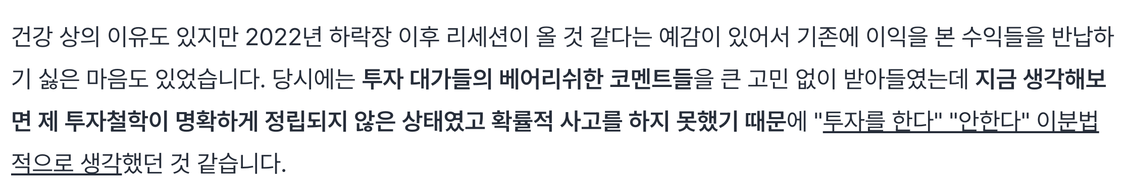 나는 스스로 장기 투자자라고 생각하고 있지만 장기 투자자라고 하기에는 인내심이 부족했고