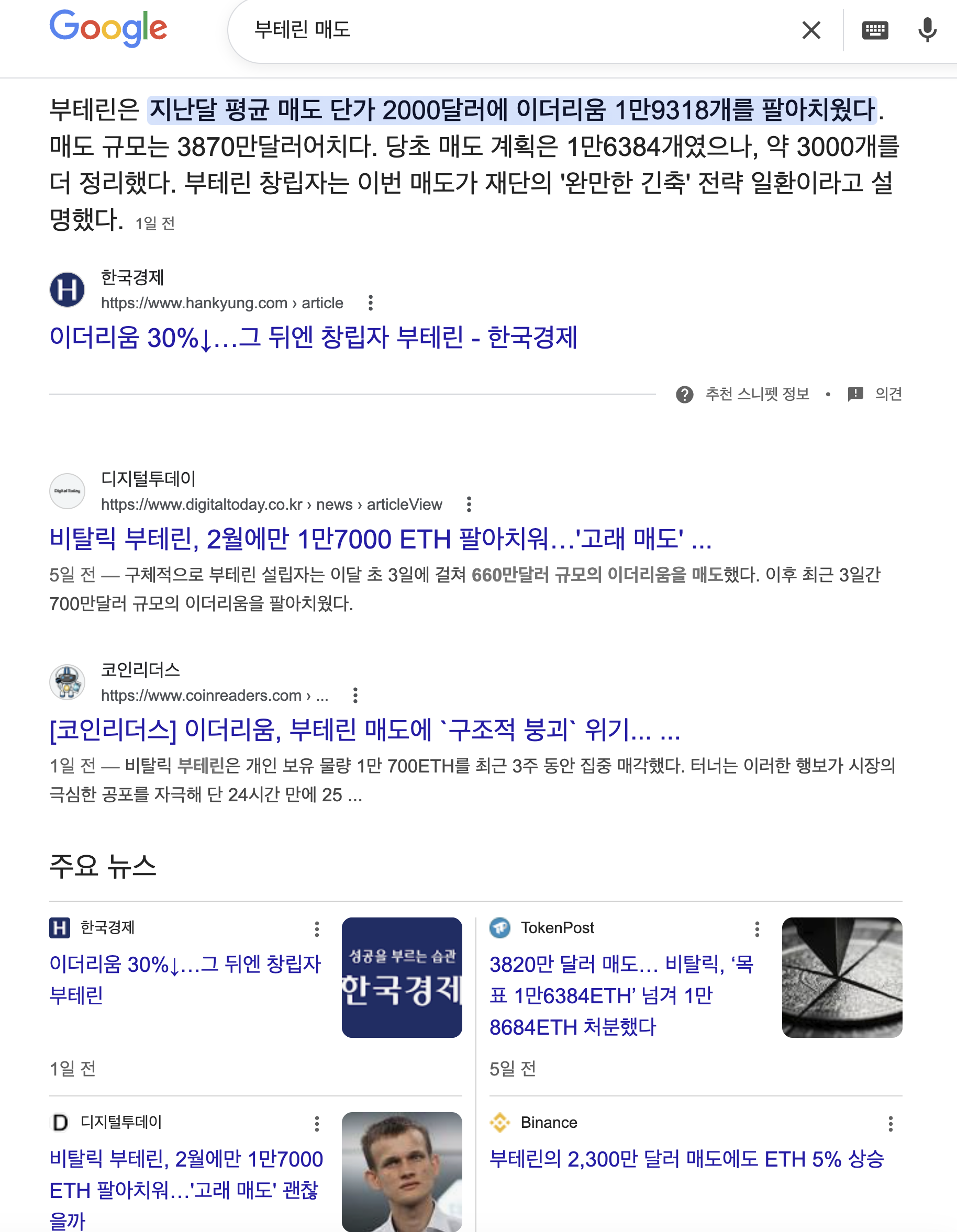 2. 『이더리움 30%↓…그 뒤엔 창립자 부테린(한국경제신문)』 - 고래 대량 매도, 내부자 거래