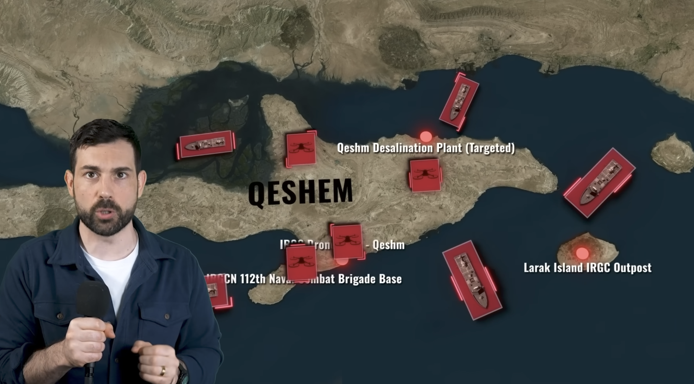 주요 발사 거점은 해협 내 소규모 섬들이다: 호르모즈(Hormoz) 섬, 라크(Lark) 섬, 그리고 가장 중요한 카셤(Qeshm) 섬. 카셈 섬은 IRGC 심층 지하기지의 본부가 위치한 곳이며 공격의 주요 발진 지점이다.