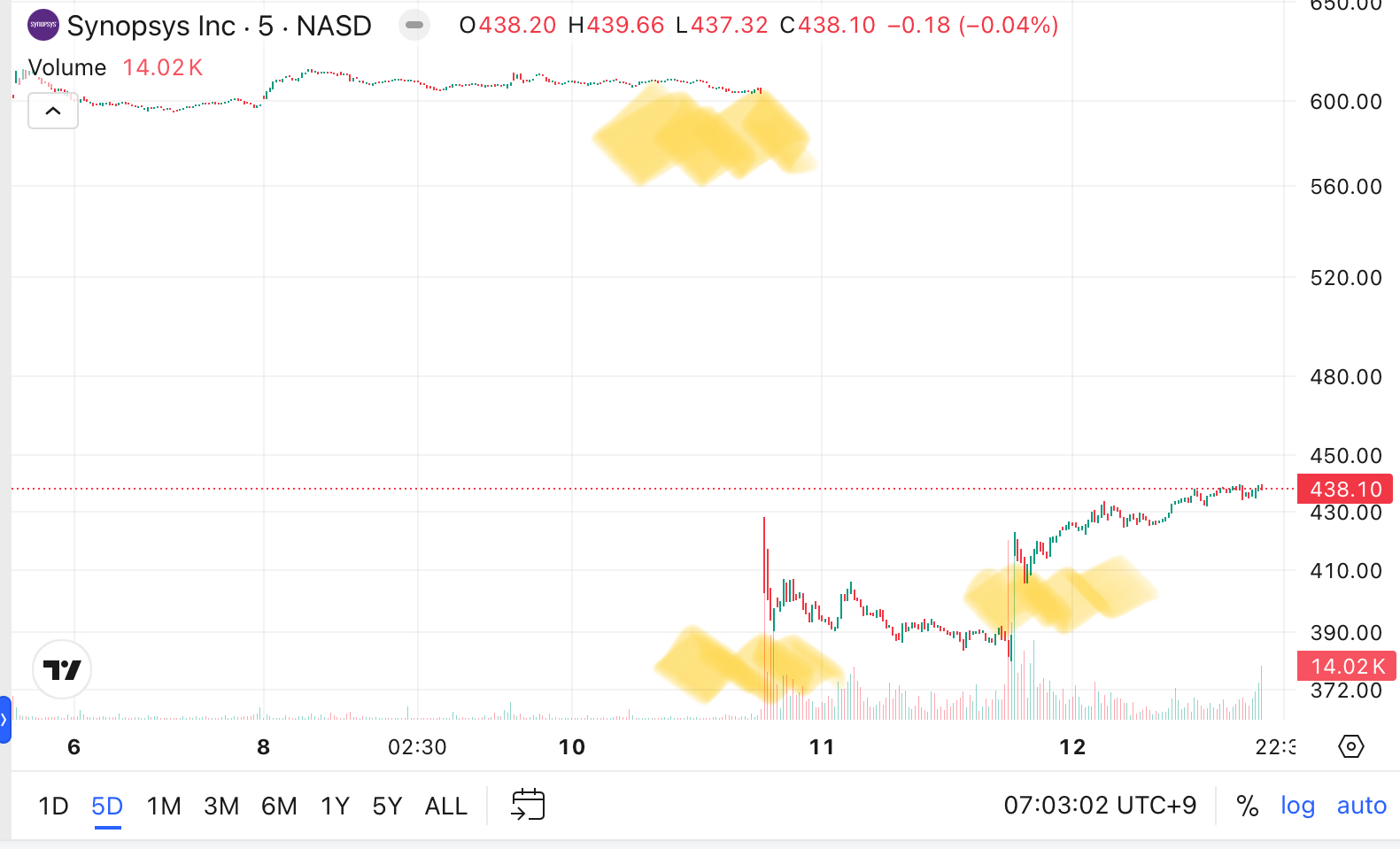9/10일 시놉시스 주가는 -35%였고, 9/11일 주가는 +13% 정도 상승했다.