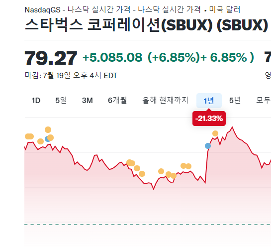 한 2주 동안 스타벅스를 엄청 리서치 열심히 해봤더니 단기간 이슈를 제외하고 장기간으로 지평을 넓혀 가져가면 괜찮을 이유가 너무 많다고 생각해서 + 저평가 가격이라는 확실한 확신이 있어서 군침을 흘리며 기다리고 있었다.